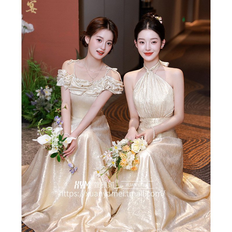 Платье подружки невесты цвета шампань 2025, новое высококачественное позолоченное элегантное платье для подружек невесты, подходит как платье для женщин.
