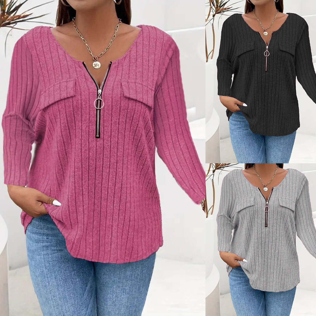 Новая трансграничная внешняя торговля, европейская и американская одежда, независимая станция Amazon, осенне-зимние топы с длинными рукавами на молнии для женщин больших размеров