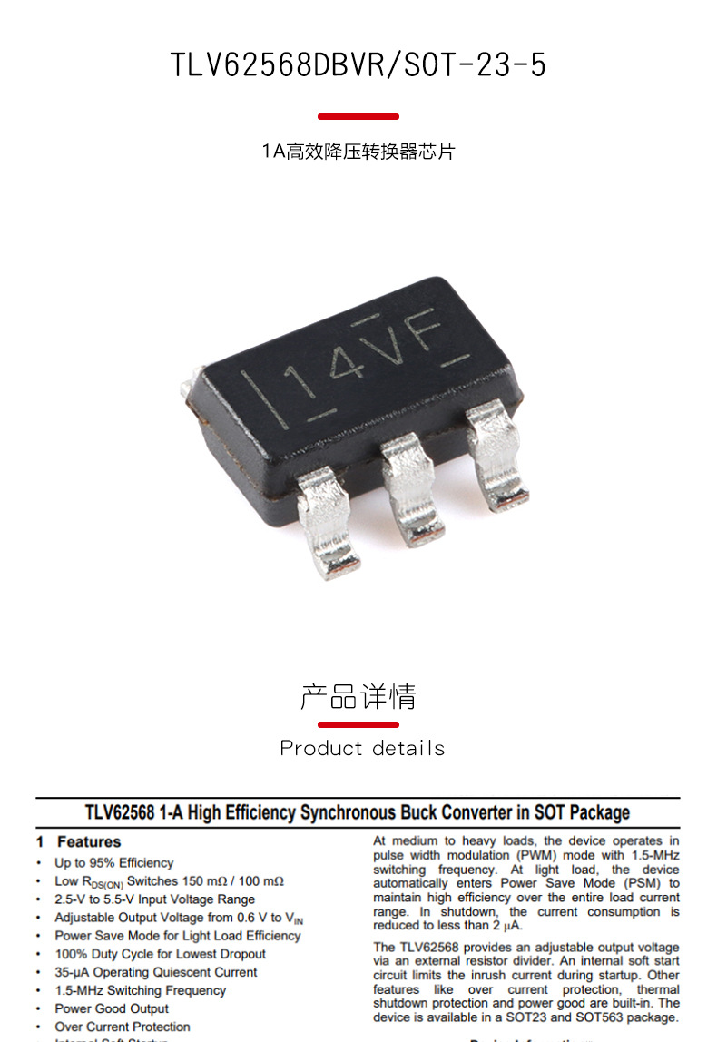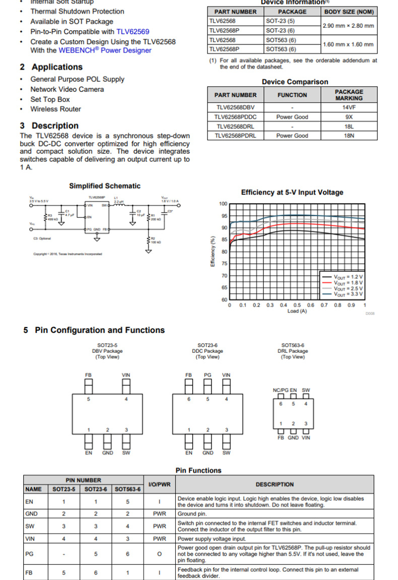 Оригинальный высокоеффективный понижающий преобразователь TLV62568DBVR SOT-23-5 1A