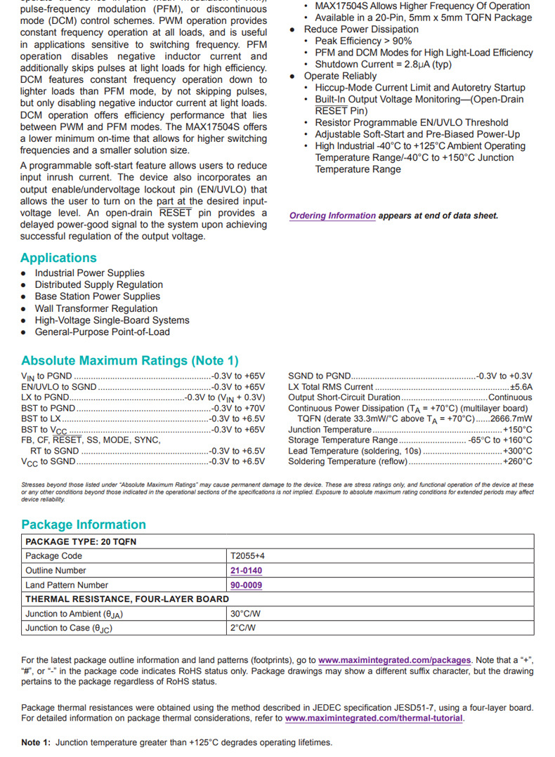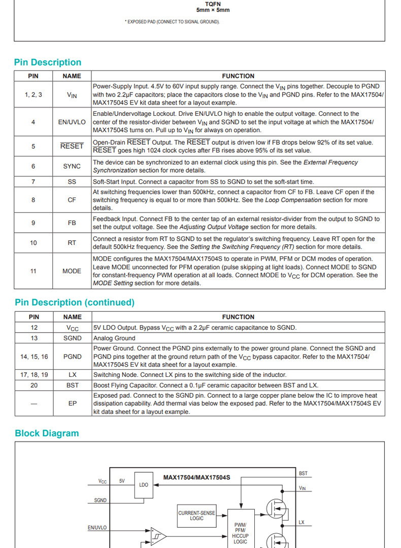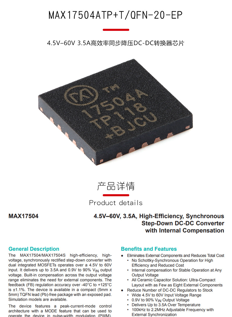 Оригинальный высокоэффективный синхронный понижающий преобразователь постоянного тока MAX17504ATP+T QFN-20-EP3.5A