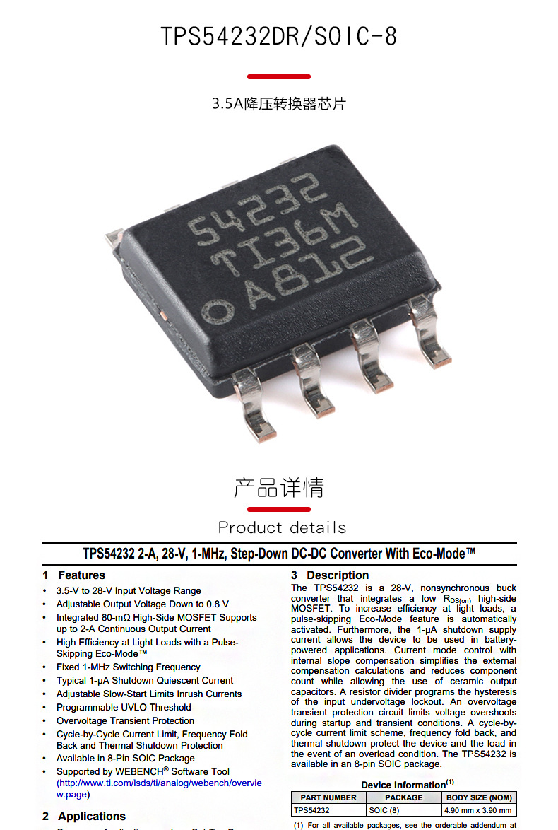 Оригинальный чип понижающего преобразователя TPS54232DR SOIC-8 3,5A