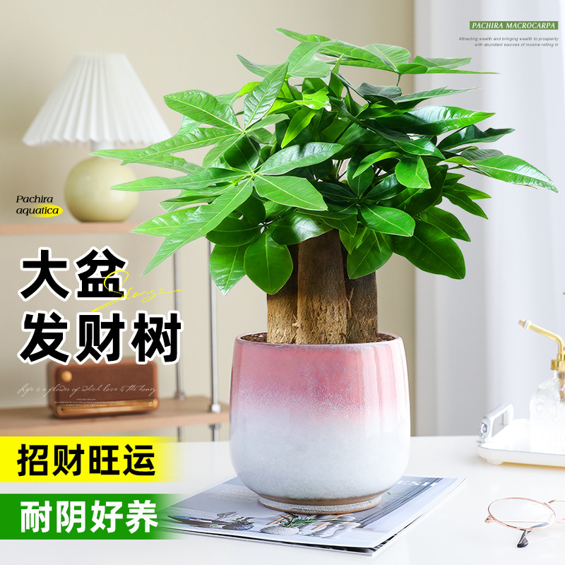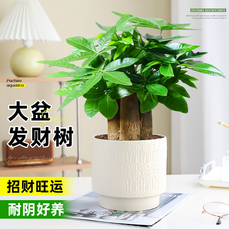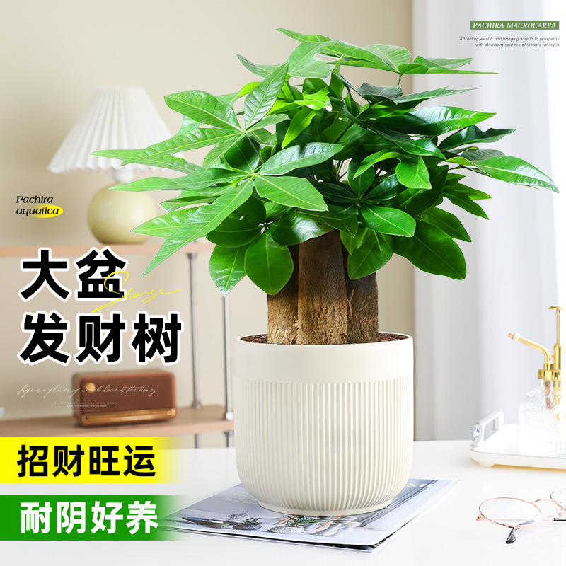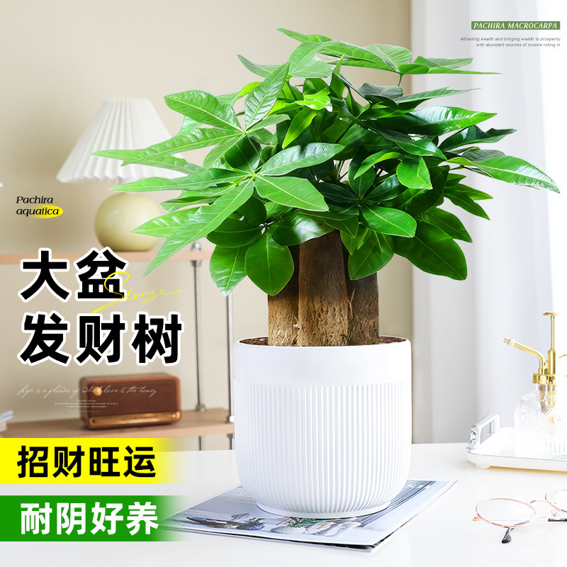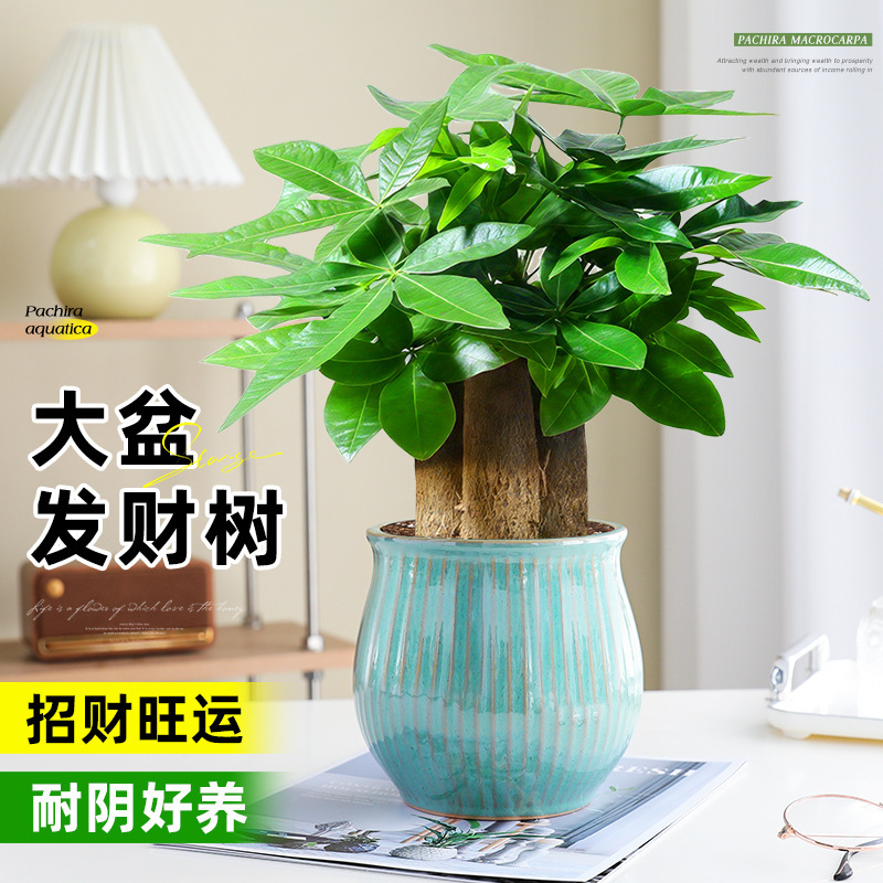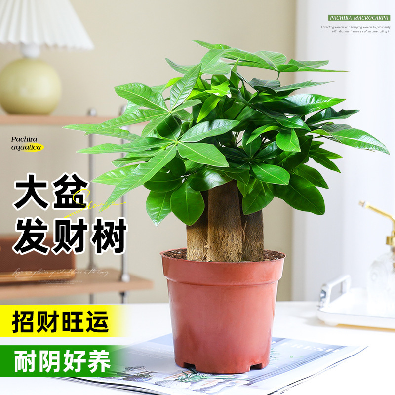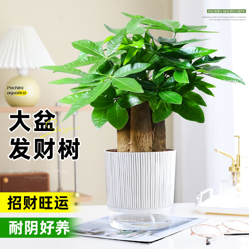 Большая трехствольная денежная елка, зеленое растение в горшке, удачи, комнатный бонсай, вечнозеленые цветы круглый год, легко выращивать денежное дерево, растение в горшке