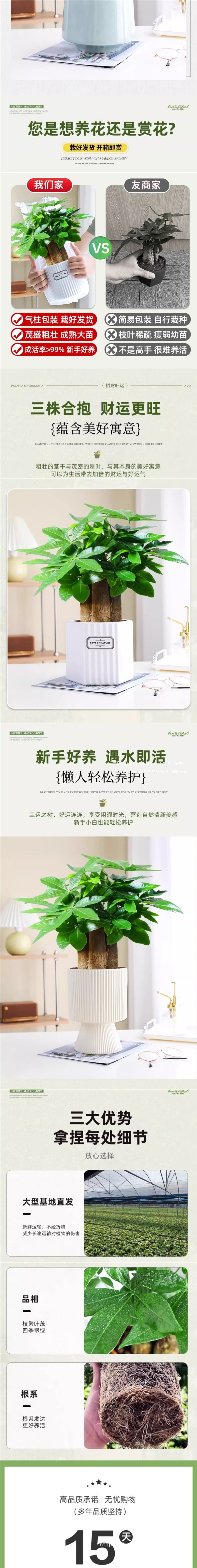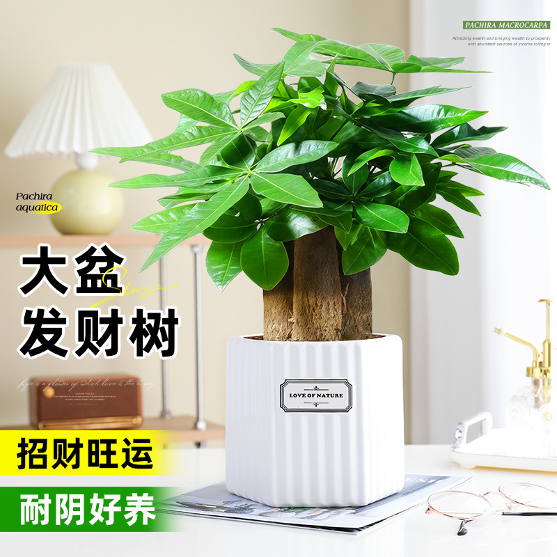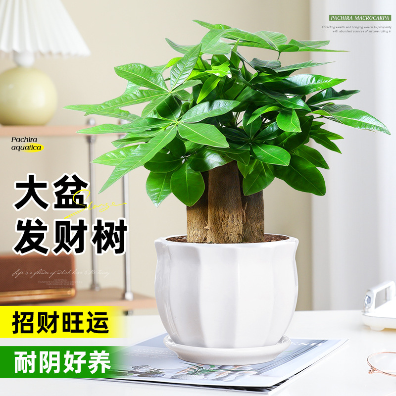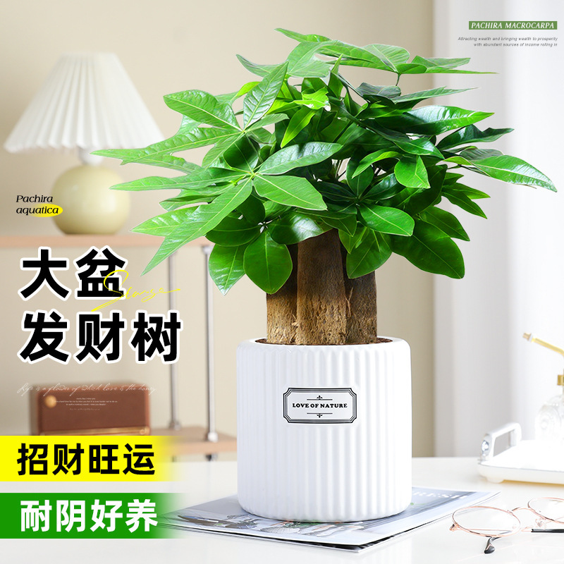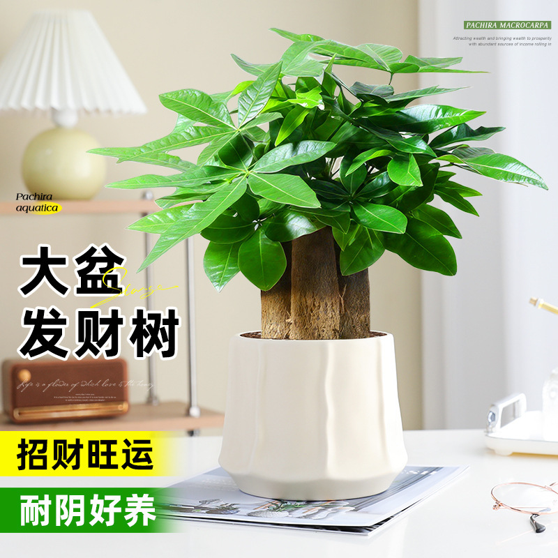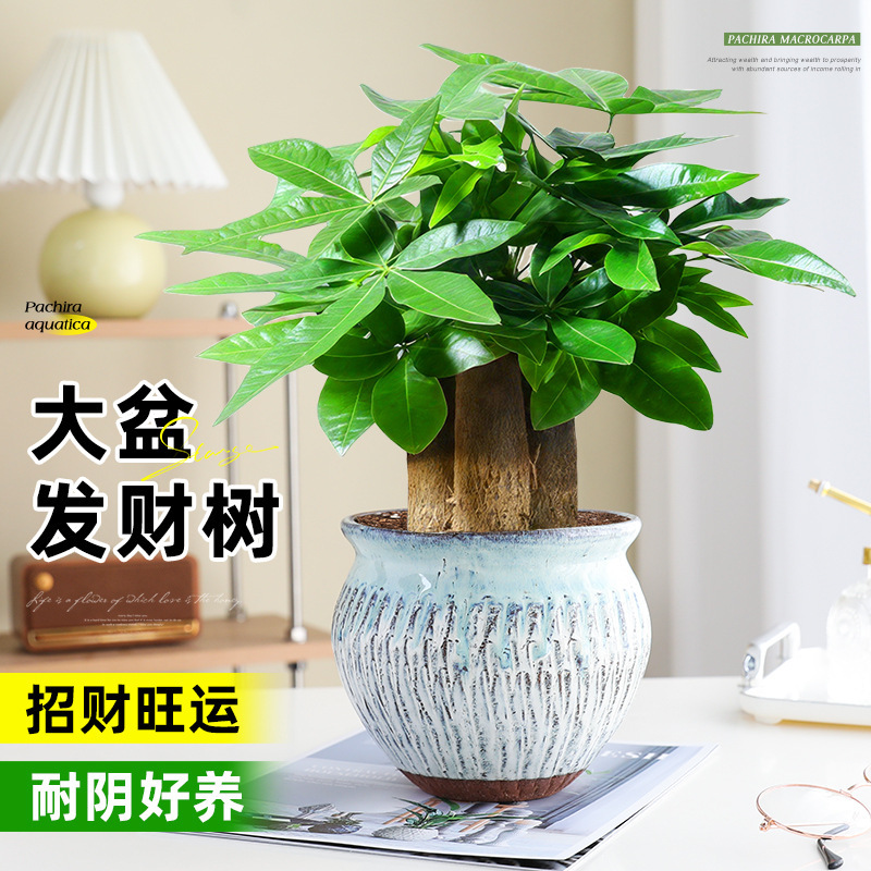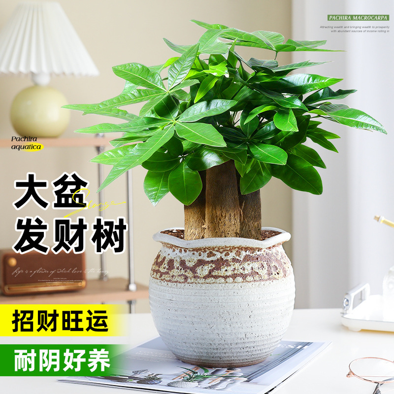Большая трехствольная денежная елка, зеленое растение в горшке, удачи, комнатный бонсай, вечнозеленые цветы круглый год, легко выращивать денежное дерево, растение в горшке