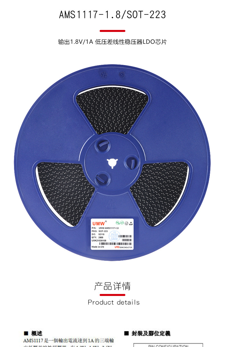 Оригинальный подлинный UMW AMS1117-1.8 SOT-223 1A линейный регулятор LDO с низким падением напряжения