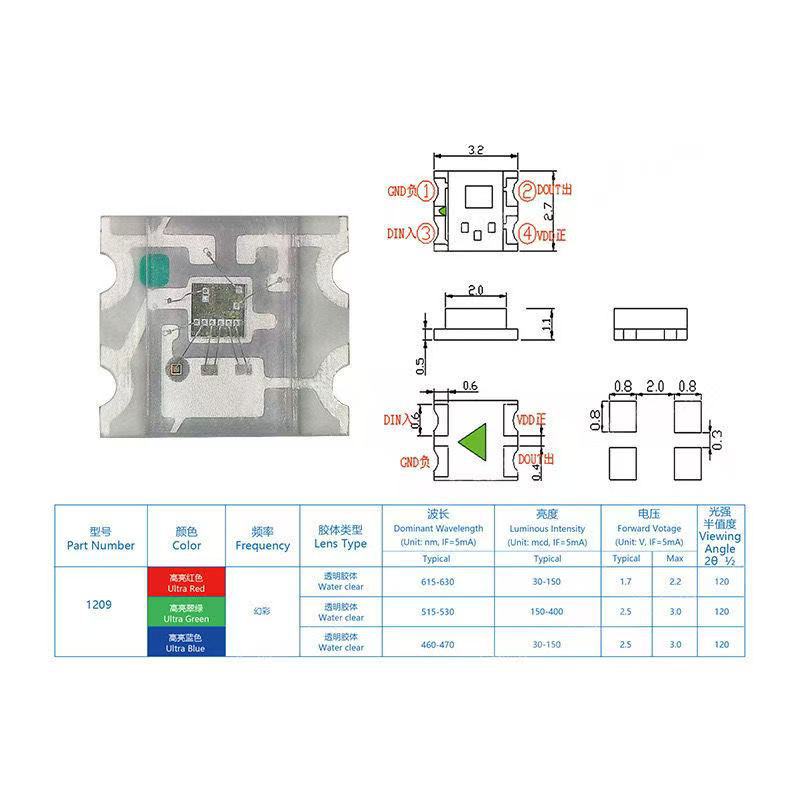 1209 Symphony WS2812 B Светодиодные лампы для скачек, бусины, специальная осветительная цепочка, встроенная микросхема WS2812 1206