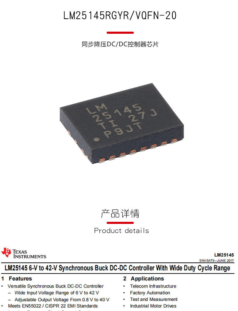 Оригинальный подлинный чип контроллера постоянного/постоянного тока LM25145RGYR VQFN-20 с синхронным понижением напряжения
