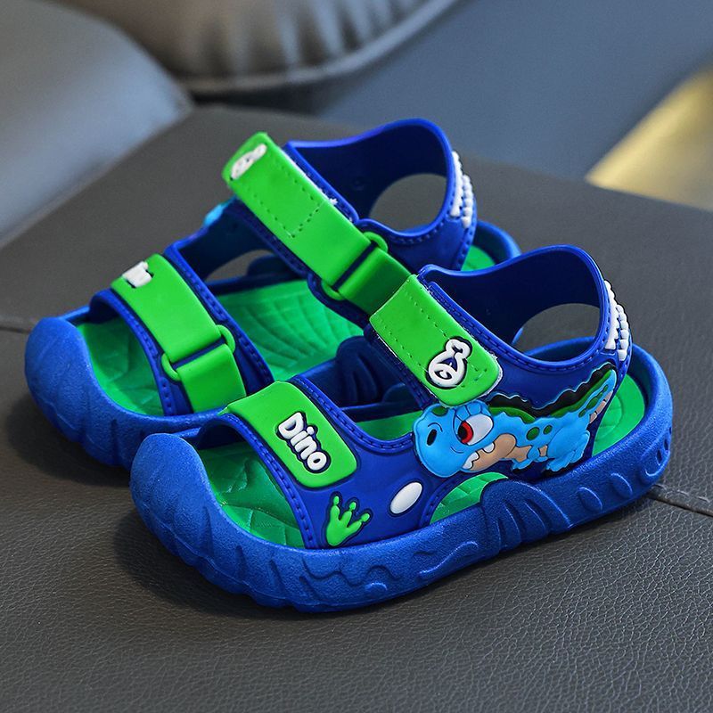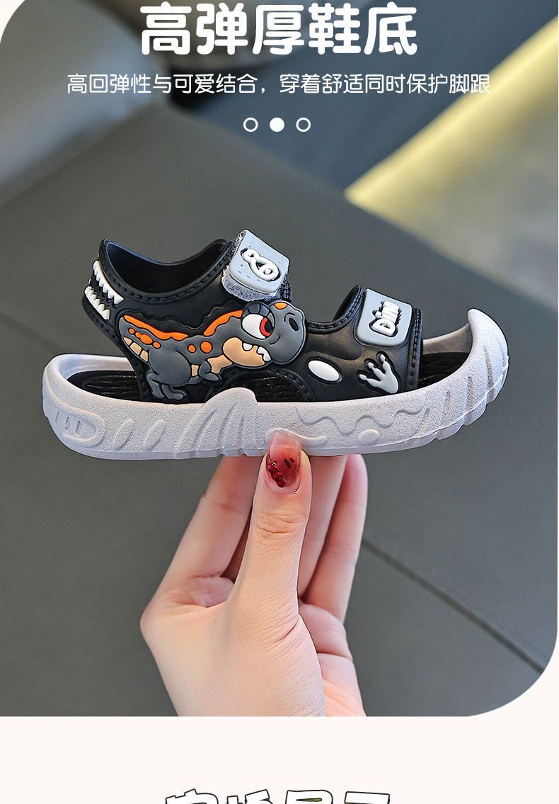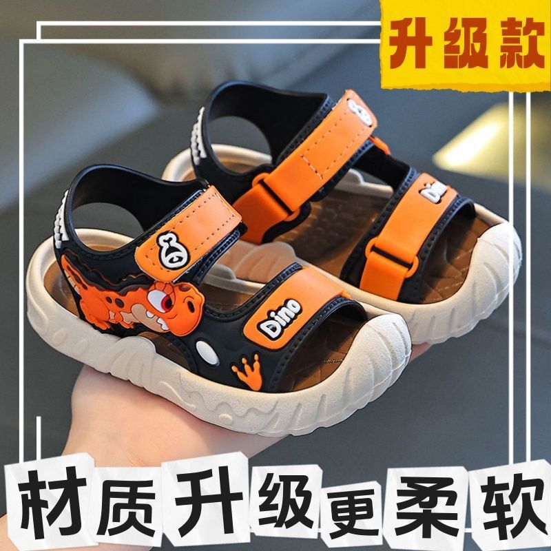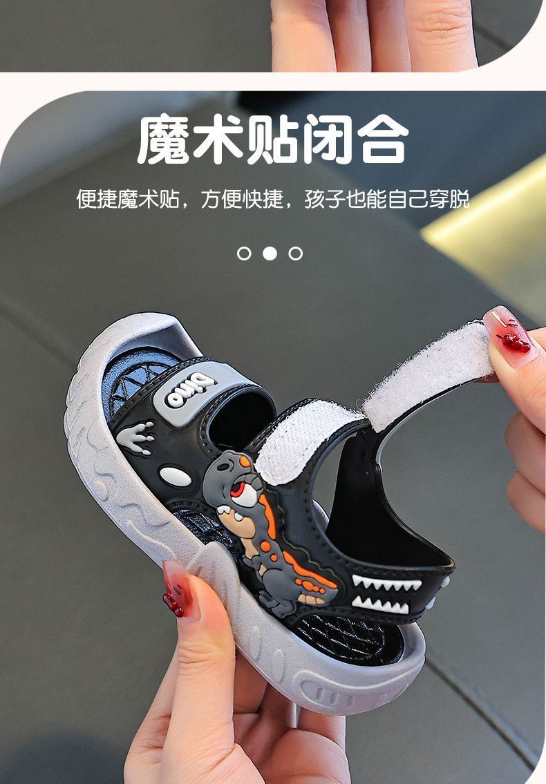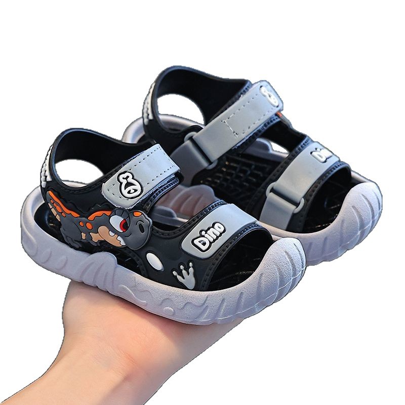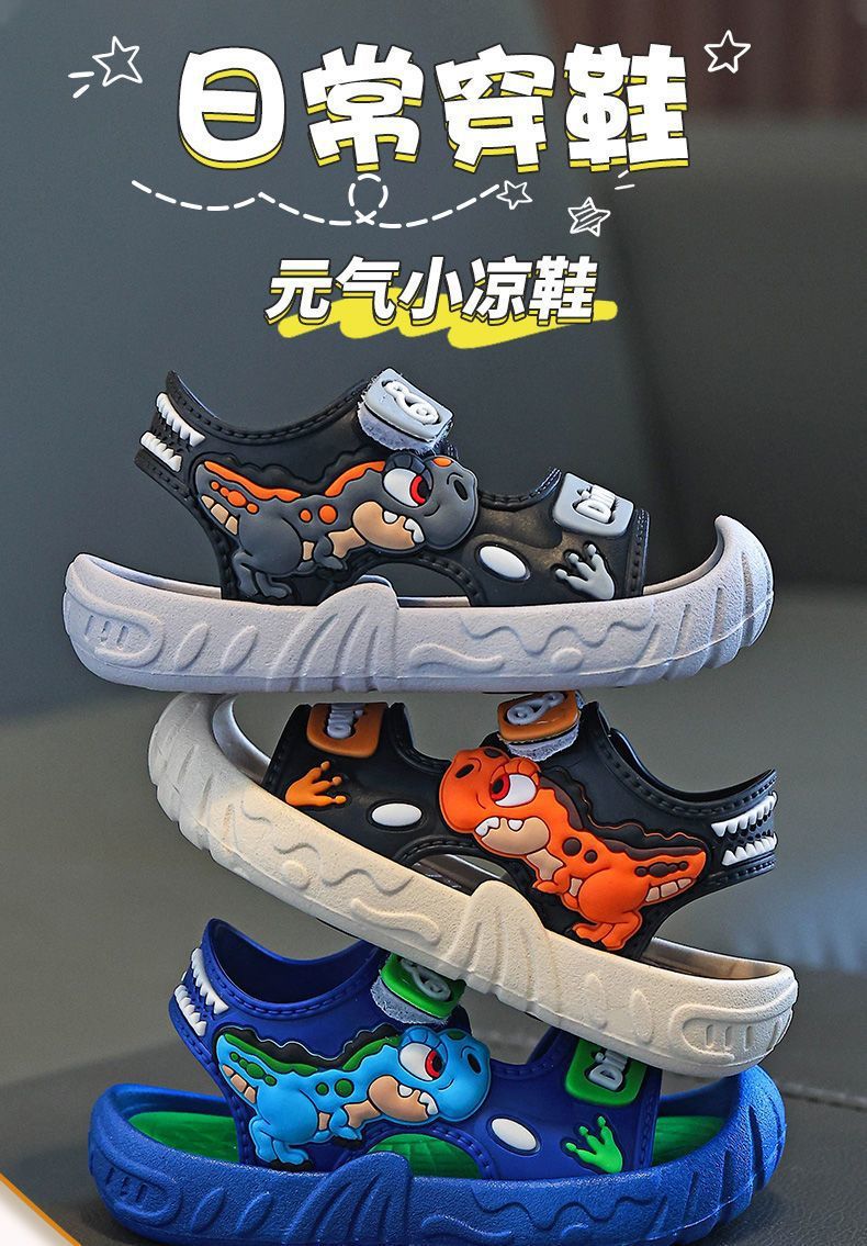 Популярные детские сандалии, летние детские сандалии с рисунком динозавра и мягкой подошвой, верхняя одежда на липучке, школьная пляжная обувь для мальчиков