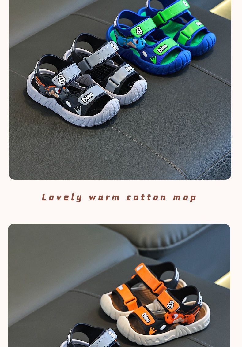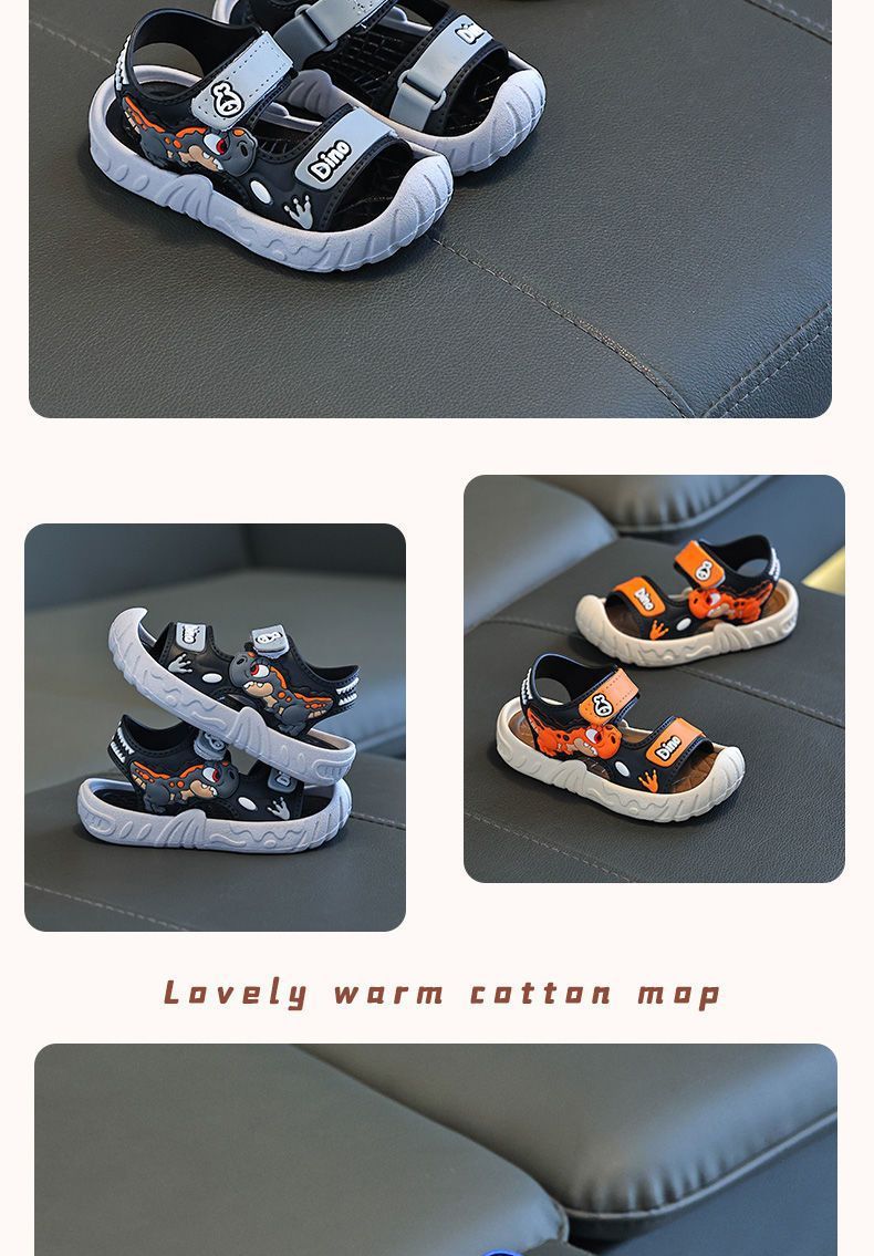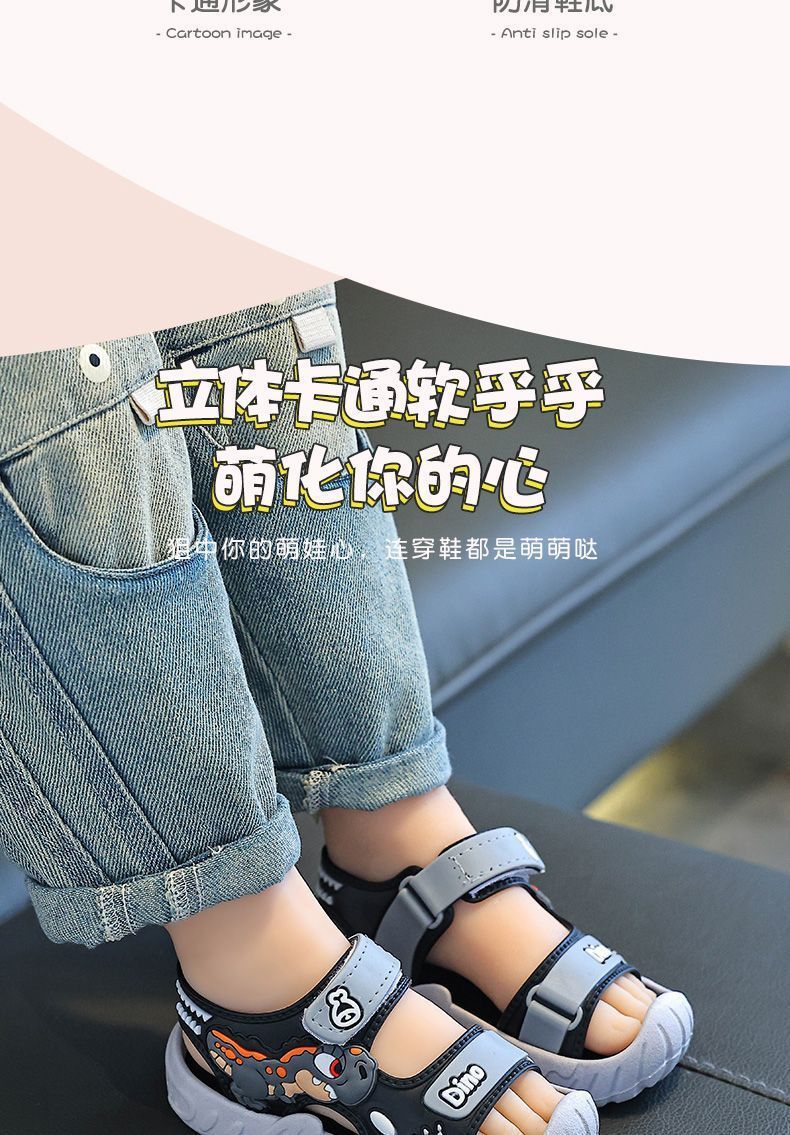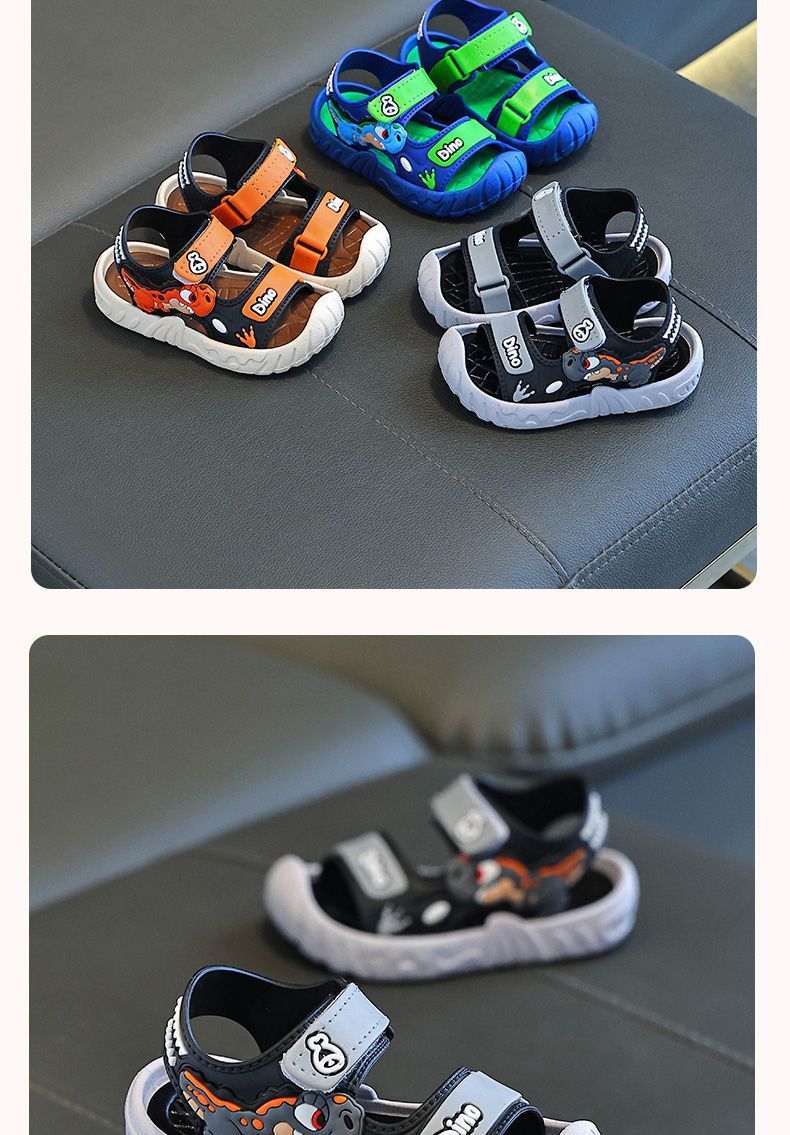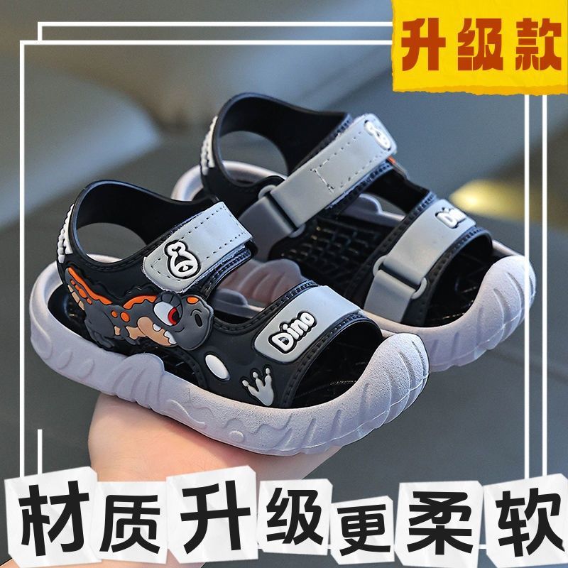 Популярные детские сандалии, летние детские сандалии с рисунком динозавра и мягкой подошвой, верхняя одежда на липучке, школьная пляжная обувь для мальчиков