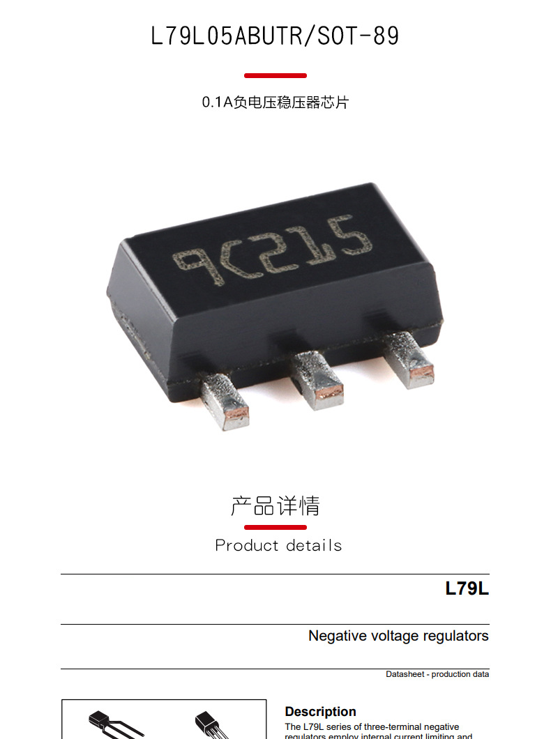 Оригинальный подлинный чип регулятора отрицательного напряжения L79L05ABUTR SOT-89 0,1A