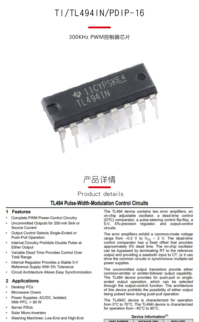 Оригинальный чип контроллера ШИМ TL494IN PDIP-16 300 кГц с прямым подключением