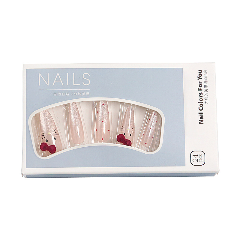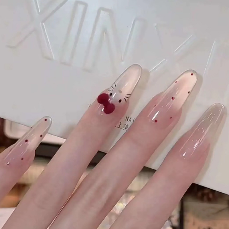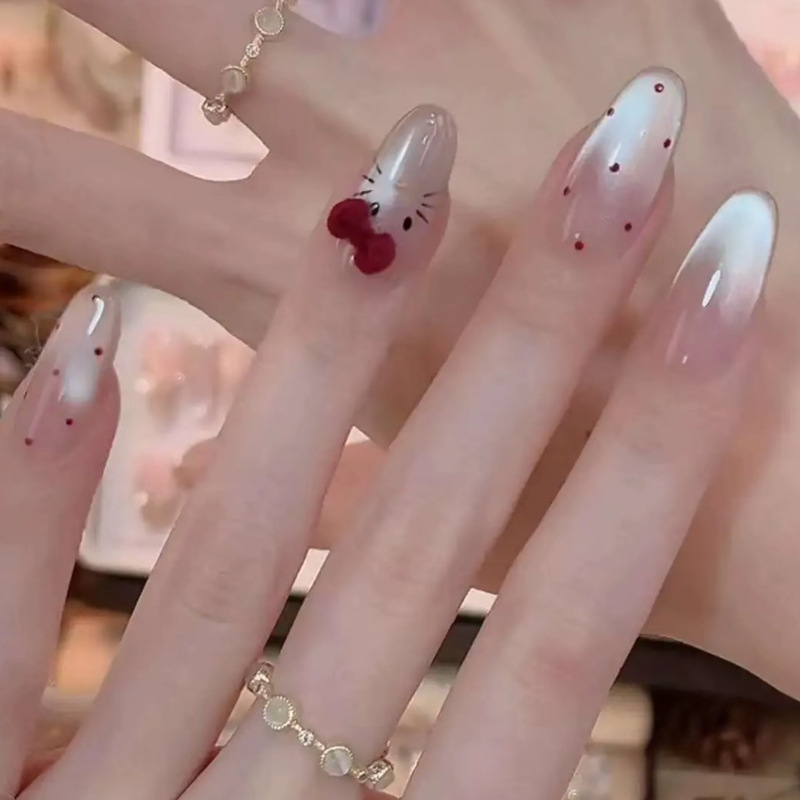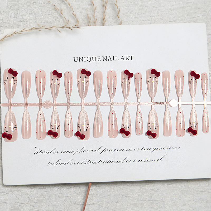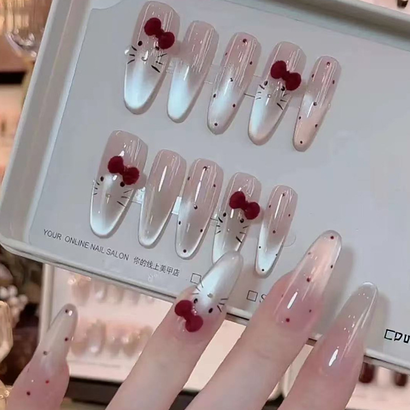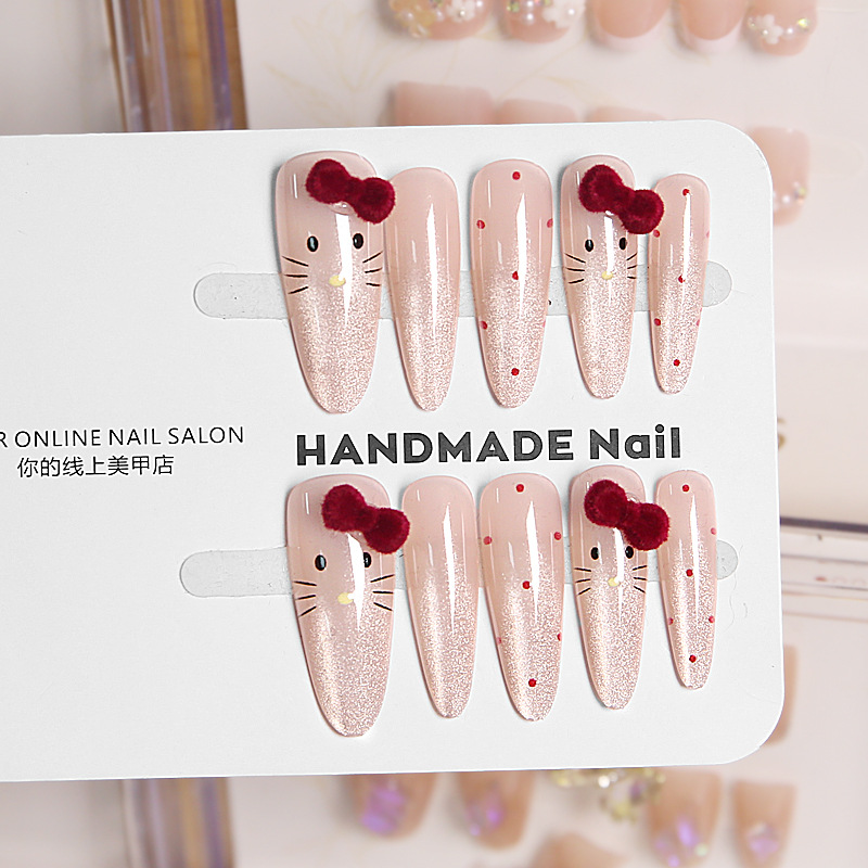 Популярные носимые ногти Xiaohongshu, красные бархатные ногти в горошек KT, маникюр кошачьего глаза, доступные роскошные сладкие накладки для ногтей