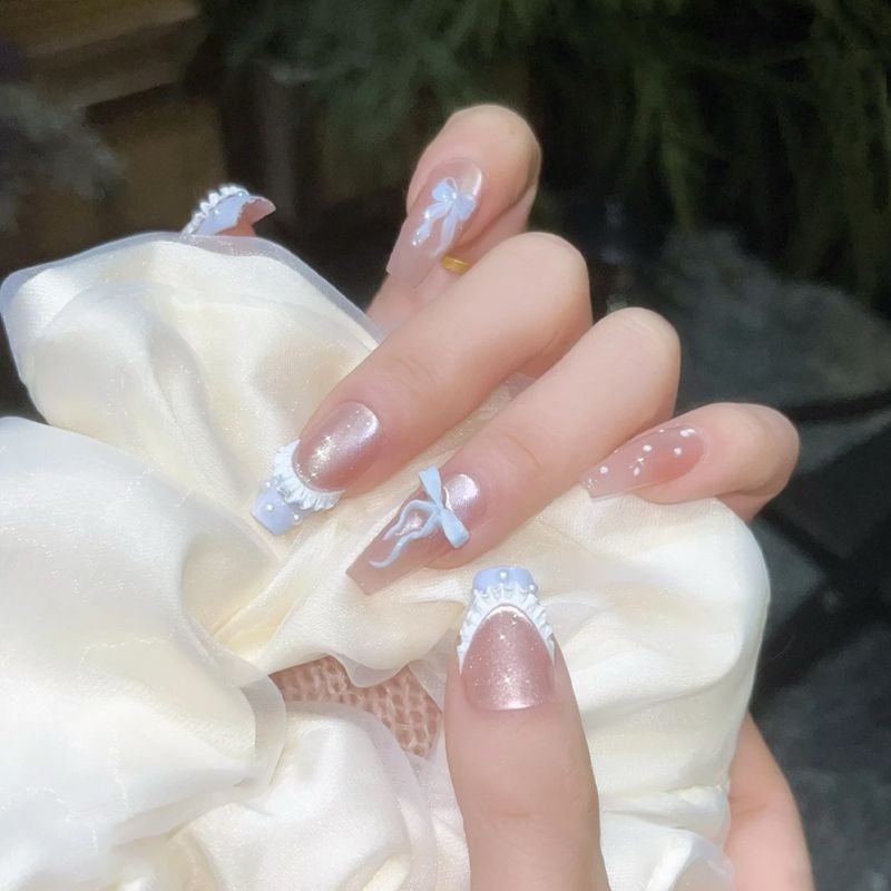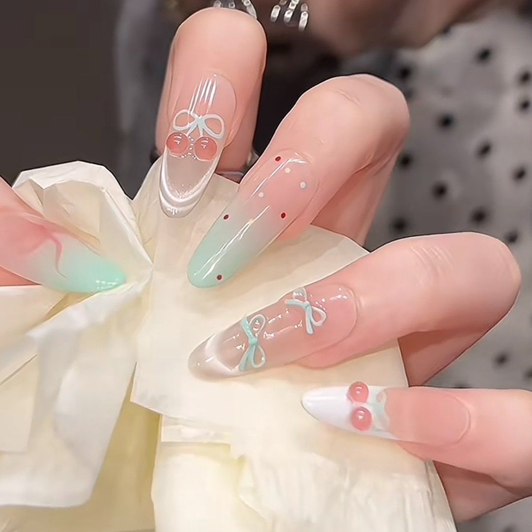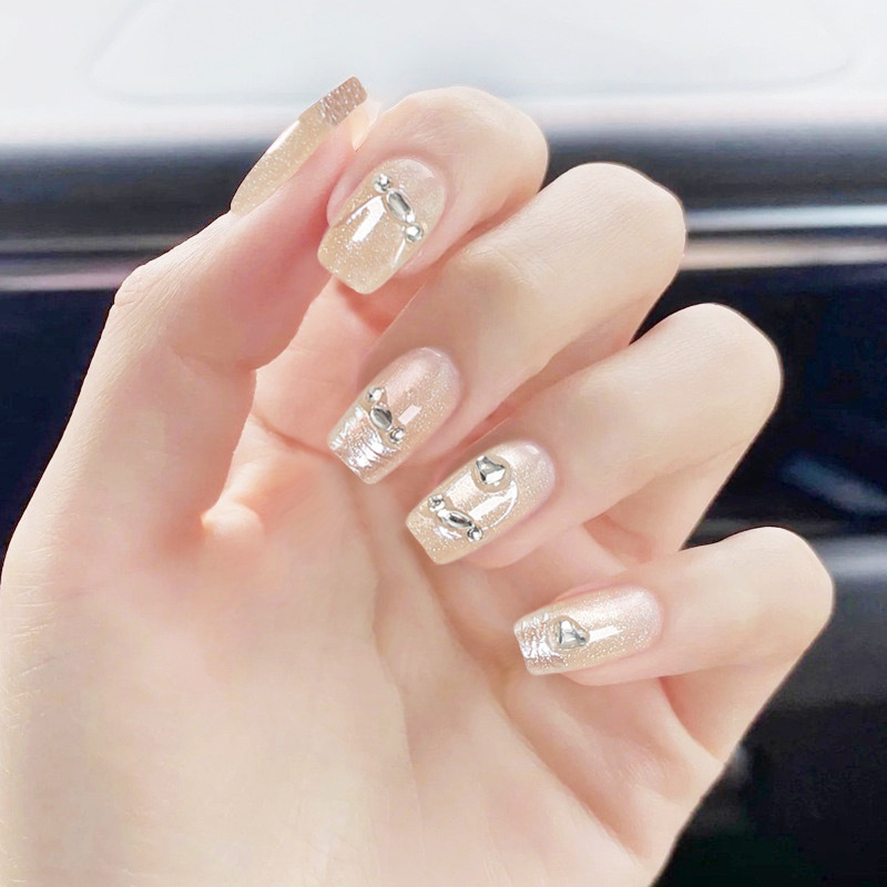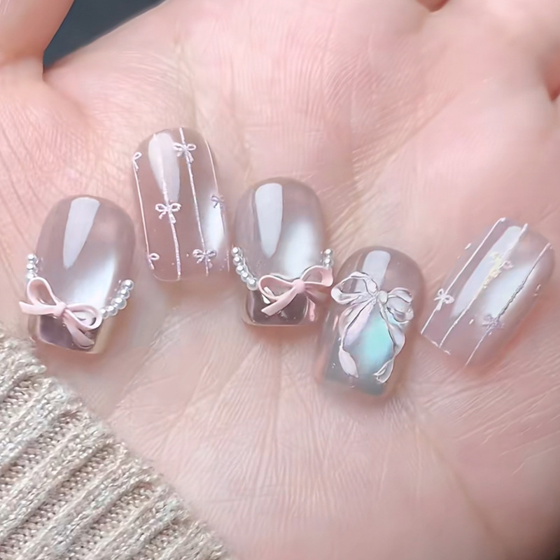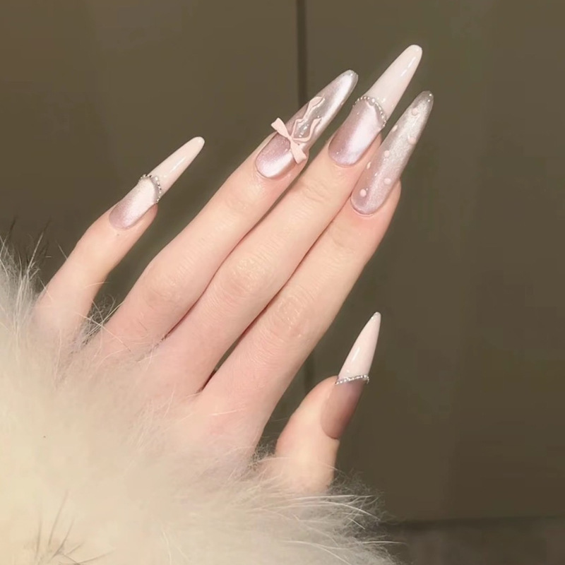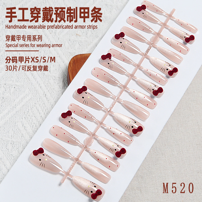 Популярные носимые ногти Xiaohongshu, красные бархатные ногти в горошек KT, маникюр кошачьего глаза, доступные роскошные сладкие накладки для ногтей