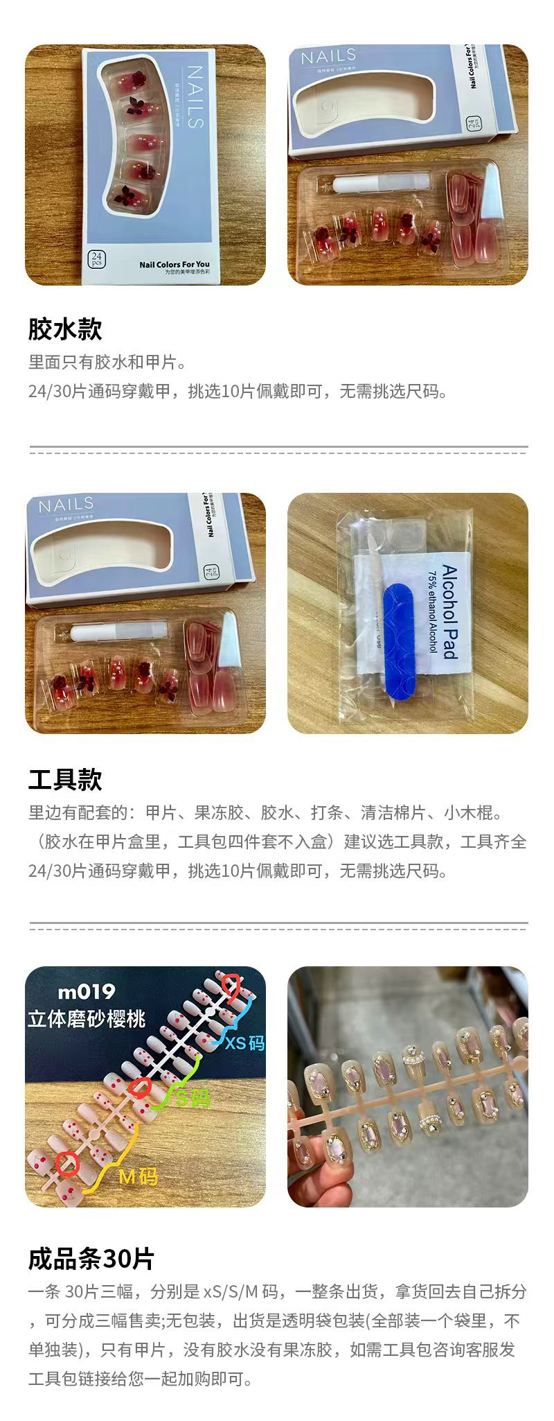 30 шт./кор. брони [тип клея]; 30 шт./кор. брони [тип инструмента]; 30 штук готовых полосок [M/S/XS]; 30 штук [полный S] готовых полосок
