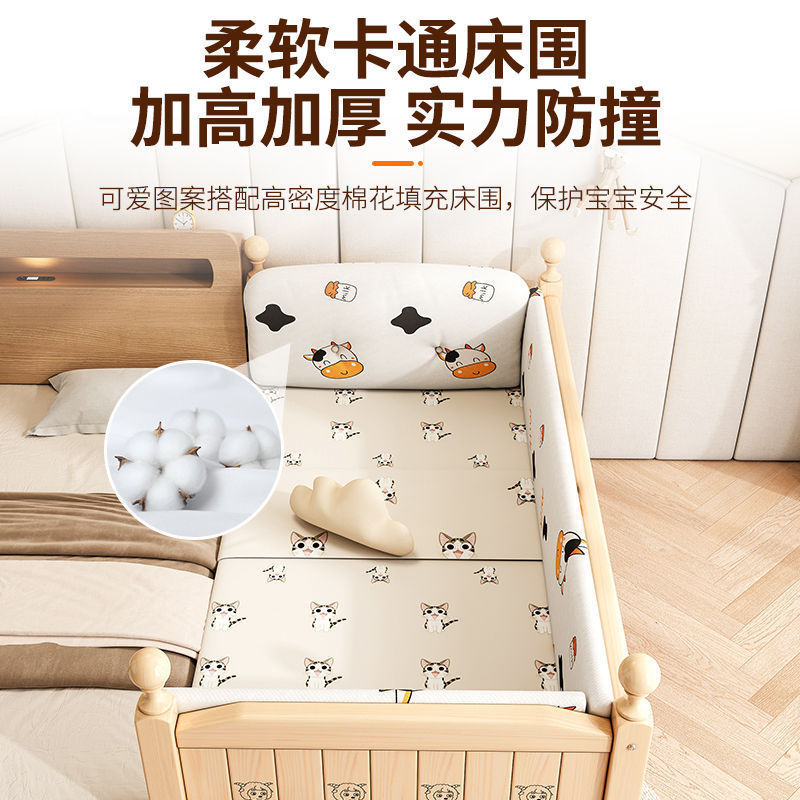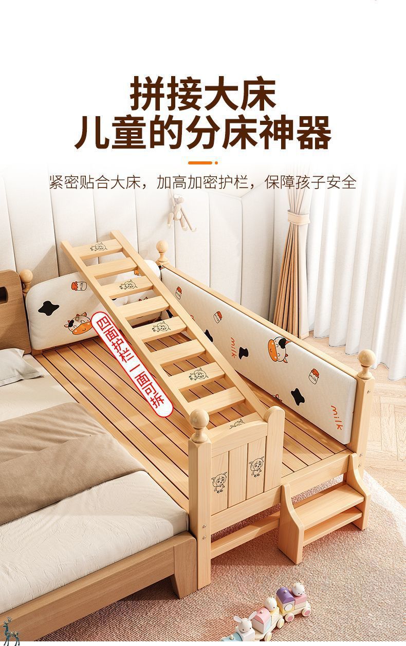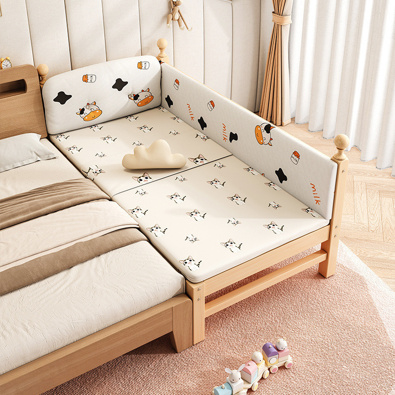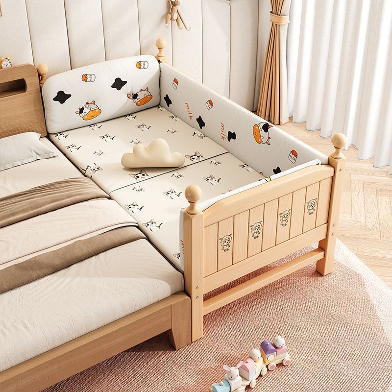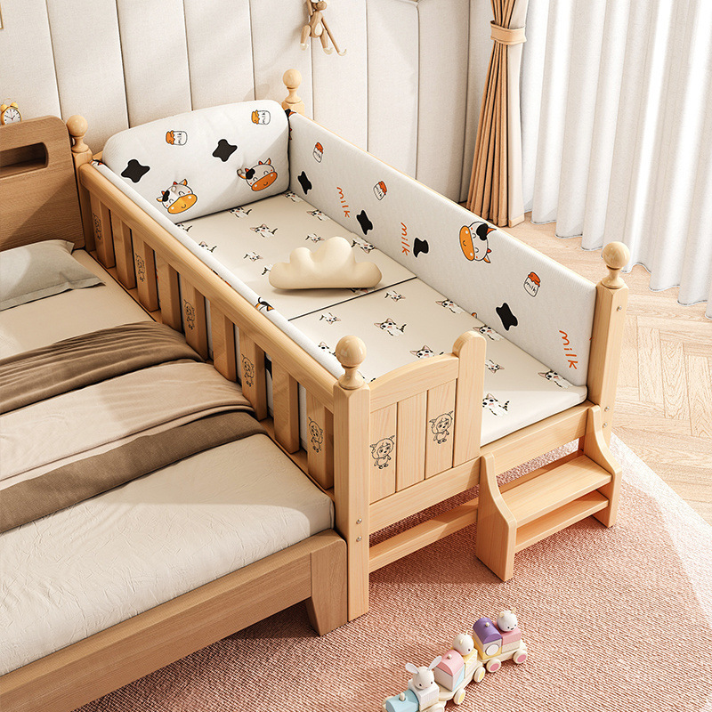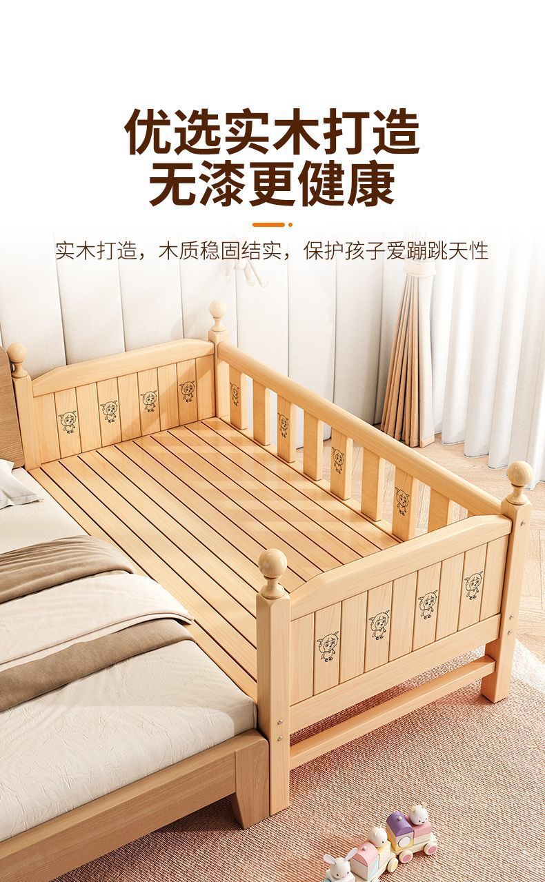 Детская кровать из цельного дерева, детская кроватка с ограждением, бытовая детская кровать, расширенная прикроватная кровать принцессы для мальчиков и девочек