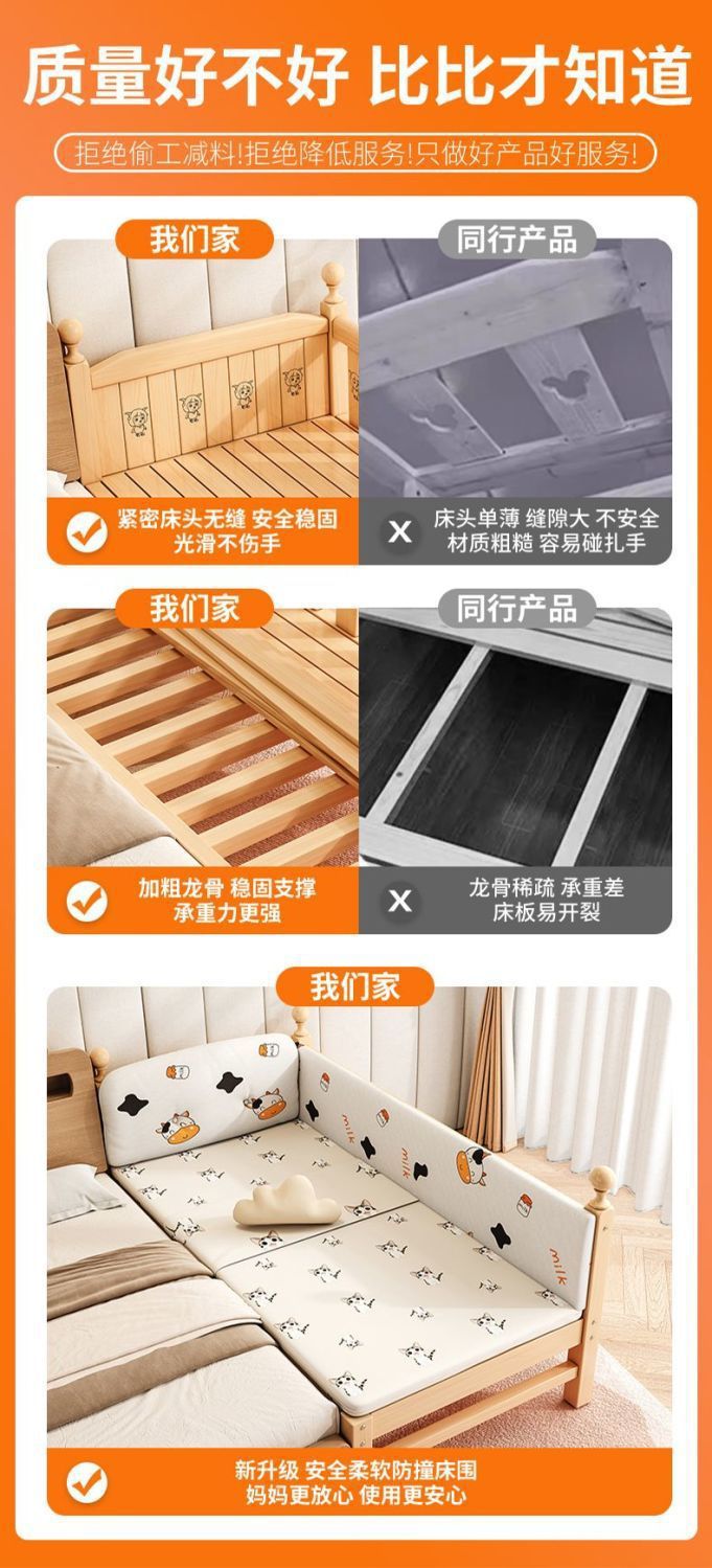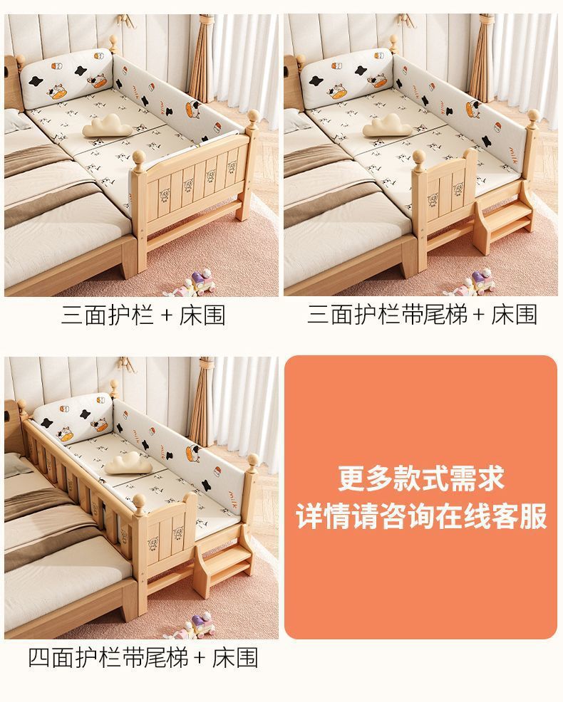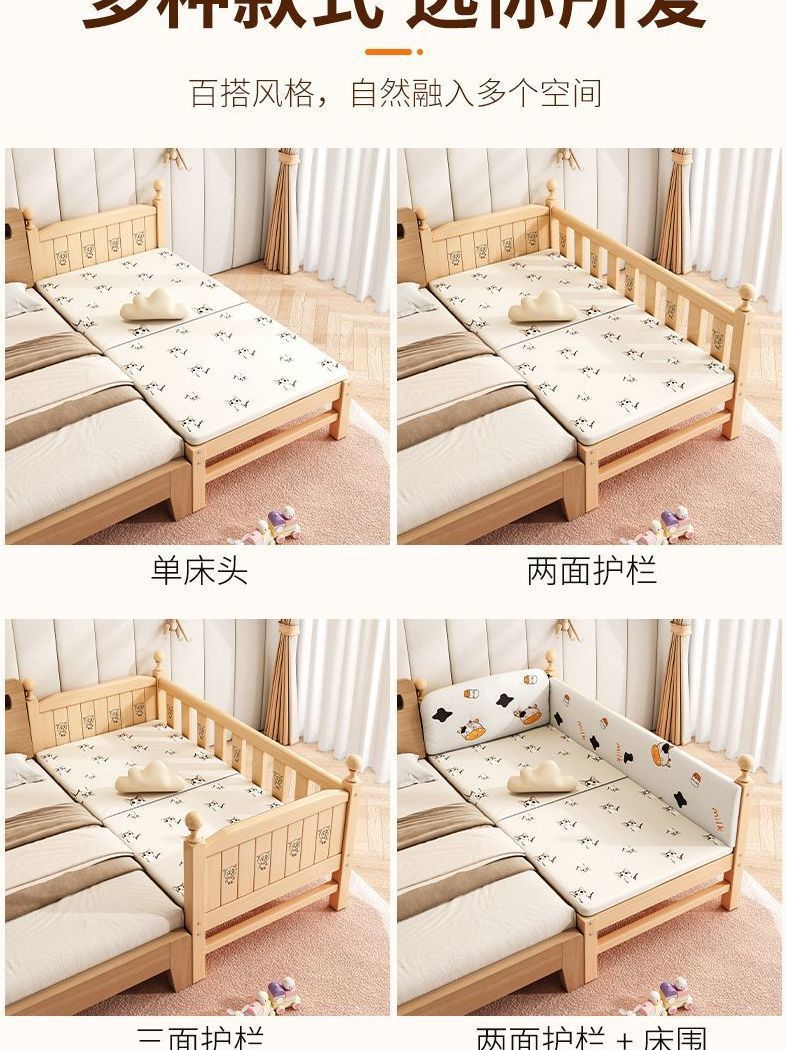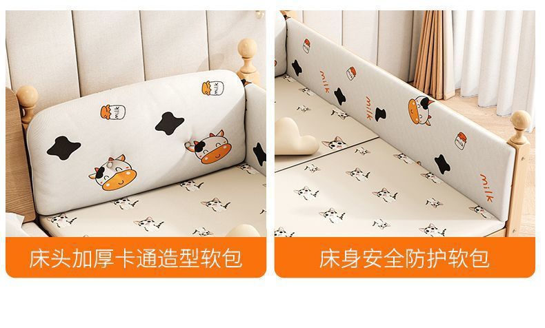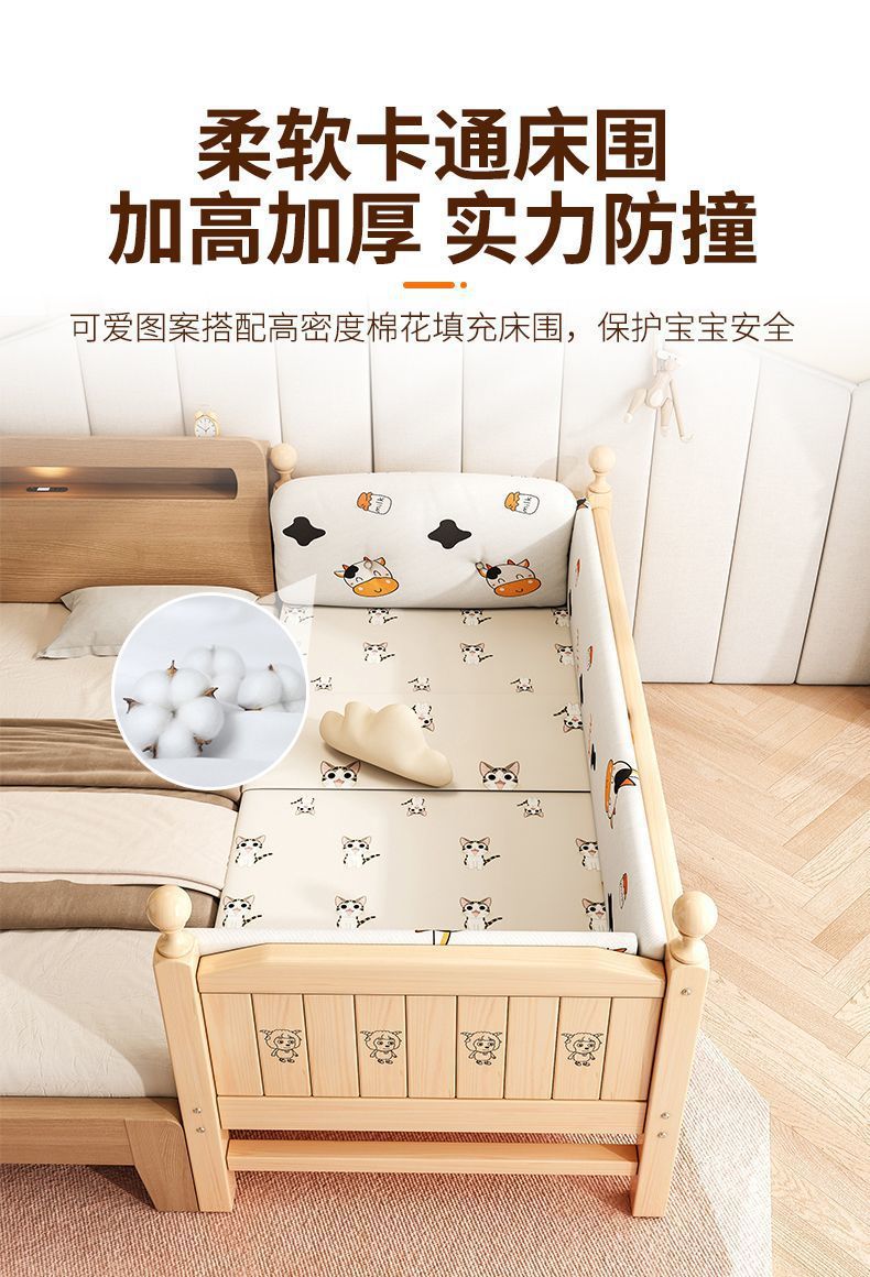 Детская кровать из цельного дерева, детская кроватка с ограждением, бытовая детская кровать, расширенная прикроватная кровать принцессы для мальчиков и девочек