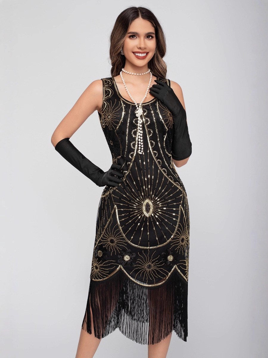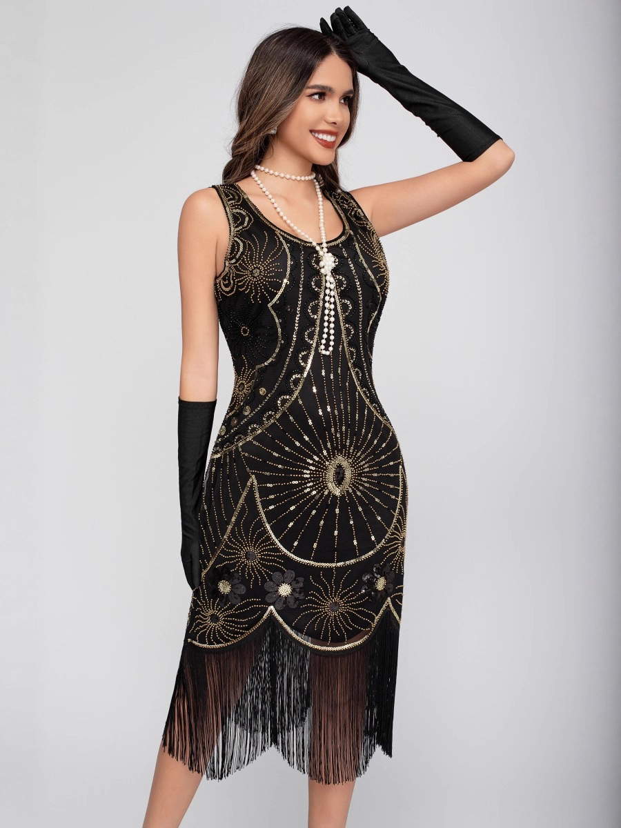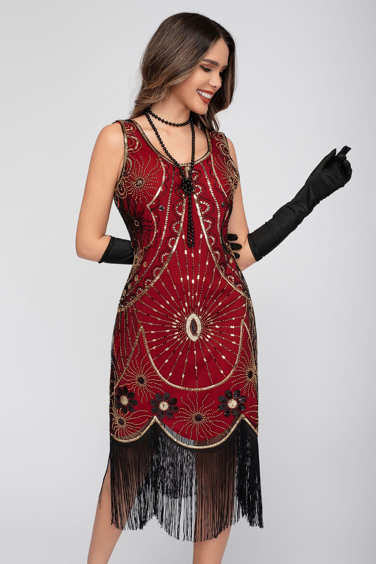 Платье с пайетками 1920-х годов, европейское и американское ретро-платье для выпускного вечера, жилет с кисточками и бисером, платье Amazon, трансграничное