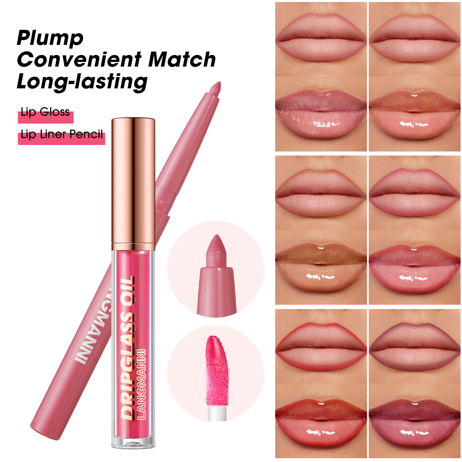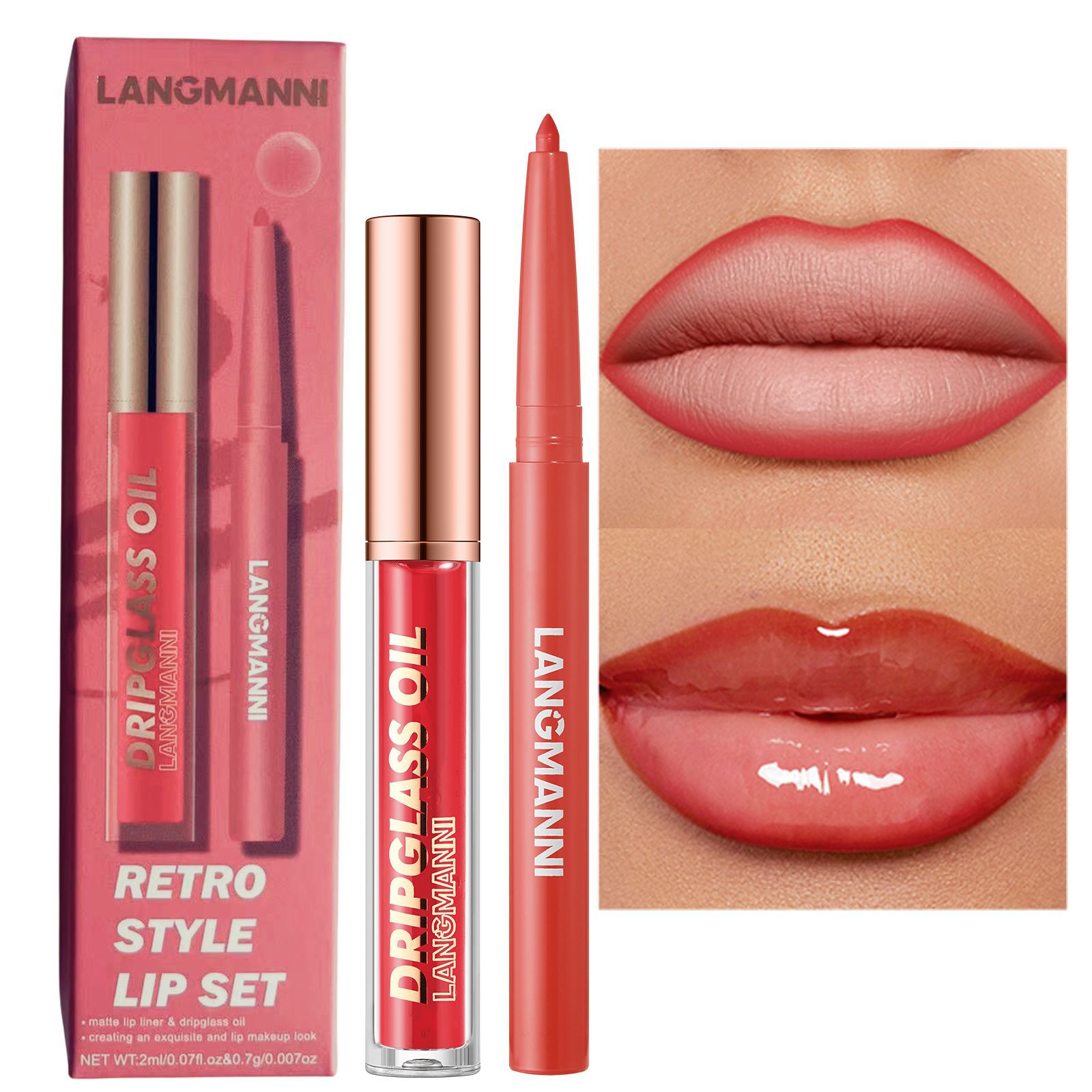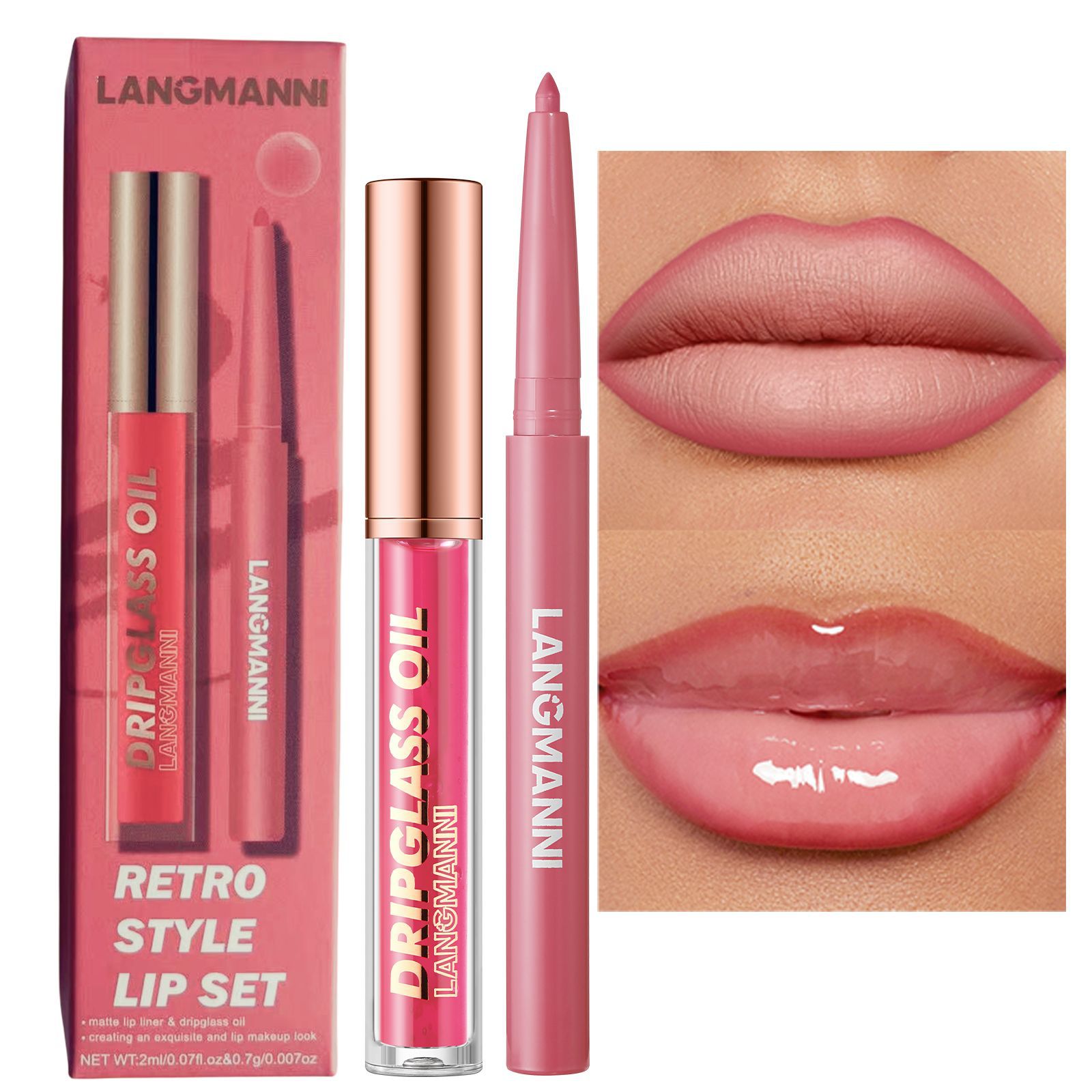 LANGMANNI новый набор для губ: масло для губ и карандаш для губ 1+1, кросс-граничный макияж, специально для Amazon и Temu.