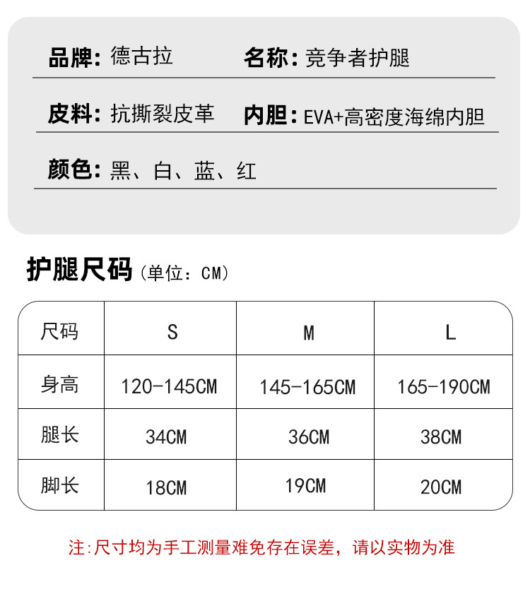 竞争者护腿(黑白色); 竞争者护腿(白黑色); 竞争者护腿(蓝白色); 竞争者护腿(红白色); 竞技者护腿(黑金); 竞技者护腿(白金); 暗夜-迷彩黑; 暗夜-迷彩粉; 暗夜-迷彩白; 暗夜-迷彩金; 暗夜-迷彩绿【特价处理】; 均码涂鸦儿童护腿(黑蓝色); 均码涂鸦儿童护腿(白橙色); 挑战者护腿(经典黑); 挑战者护腿(星空蓝); 挑战者护腿(烈焰红); 克里杨护腿(白色); 克里杨护腿(红色); 克里杨护腿(粉色); 克里杨护腿(黑色)