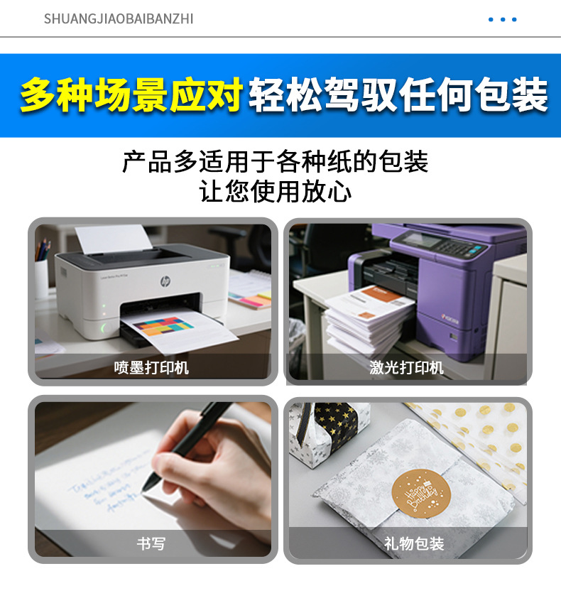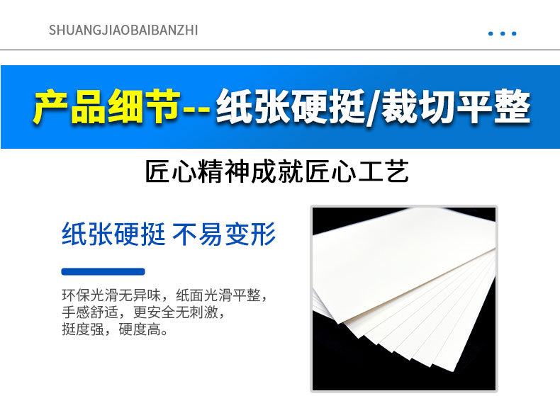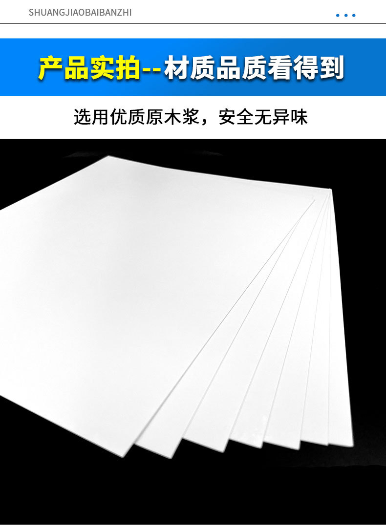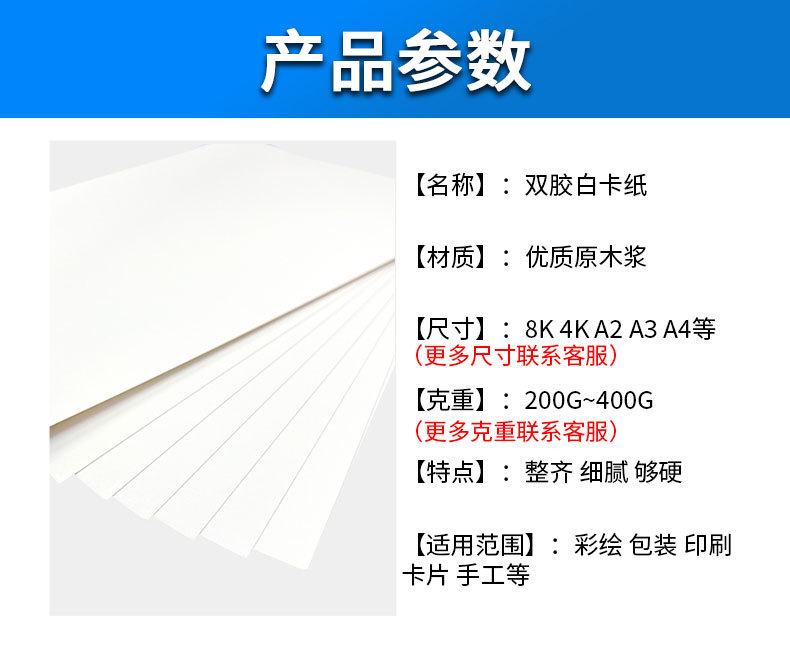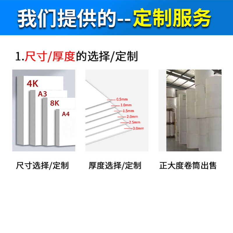 Производитель изготавливает на заказ белую картонную бумагу двустороннего покрытия формата А4 и А3, толщиной 100 г, 120 г, 150 г, 250-400 г, для печати и обложек.