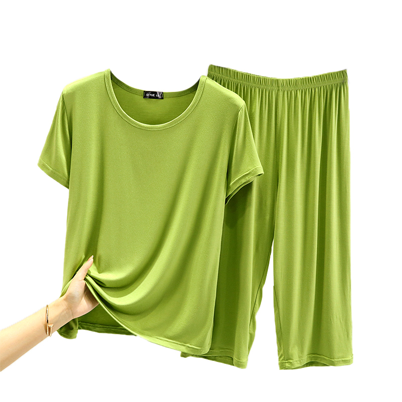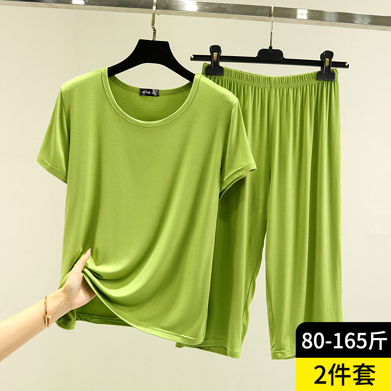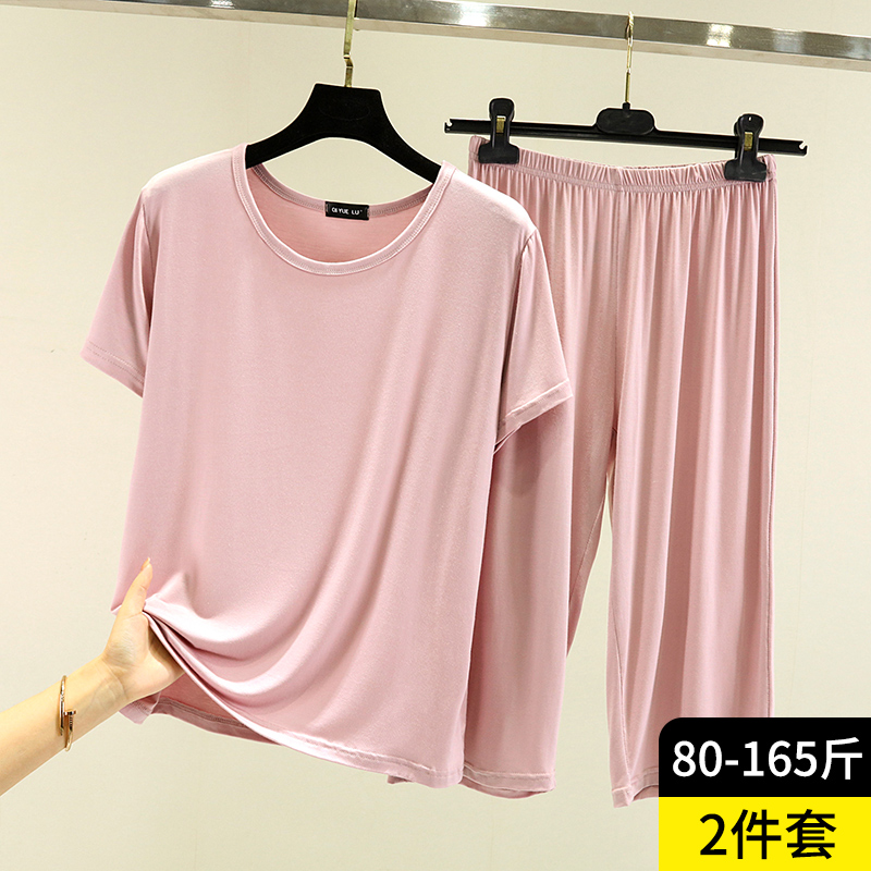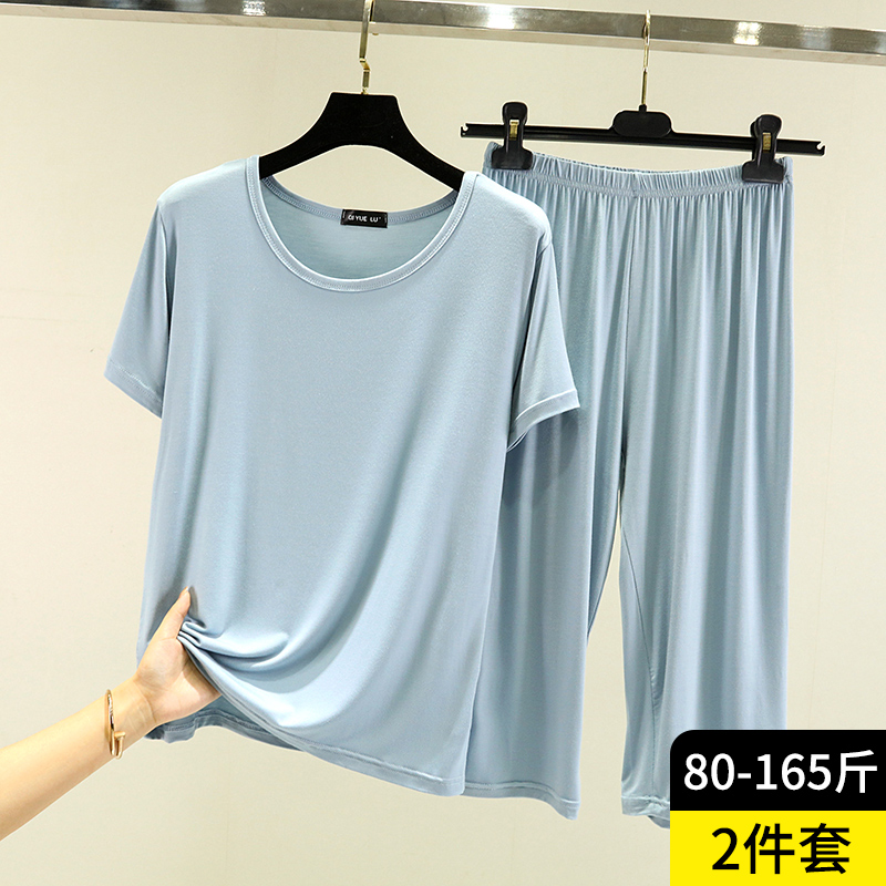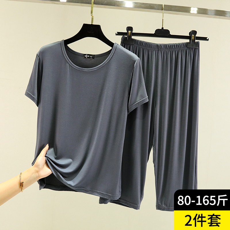 Модальные пижамы большого размера для женщин летом, свободный и удобный комплект домашней одежды, тонкие укороченные брюки с короткими рукавами, комплект из двух предметов.