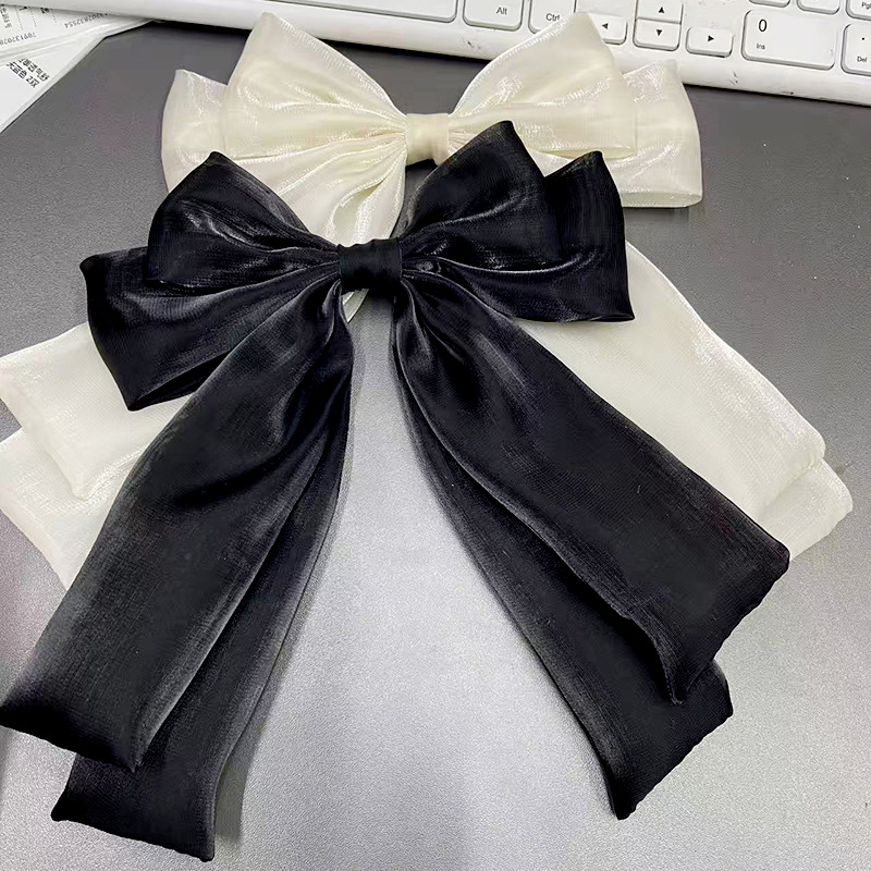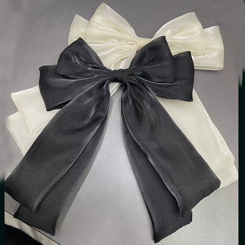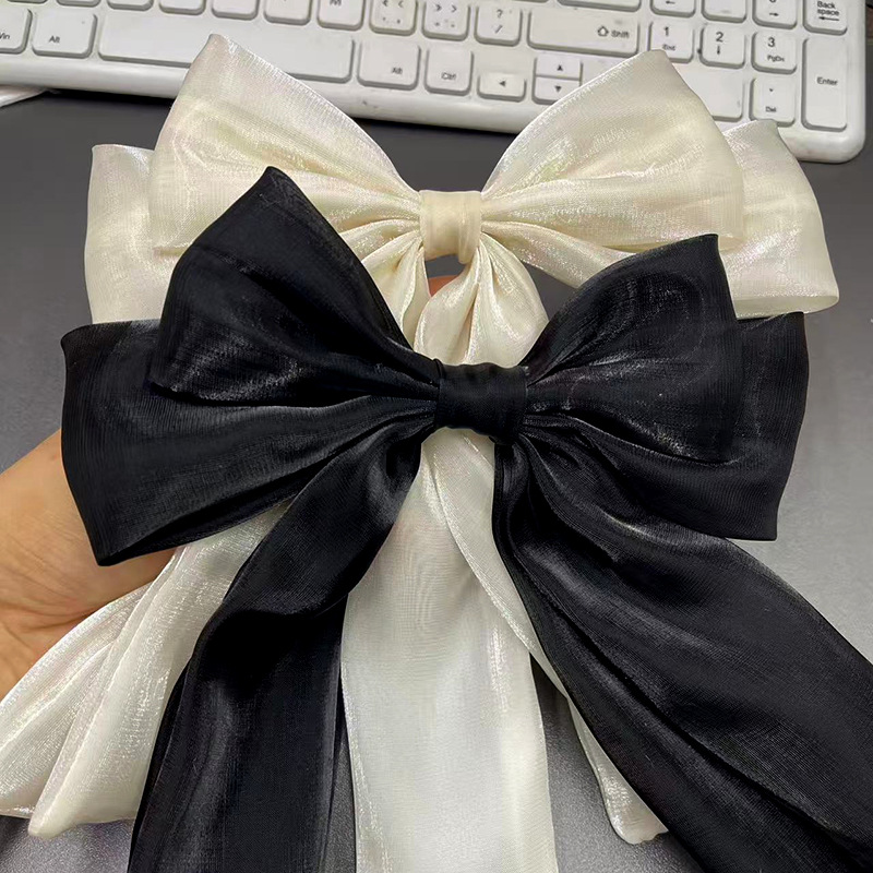 Кремовая сетчатая заколка для волос с бантом и перламутровой лентой в виде русалки, заколка для волос в лесном стиле, милая брошь-заколка.