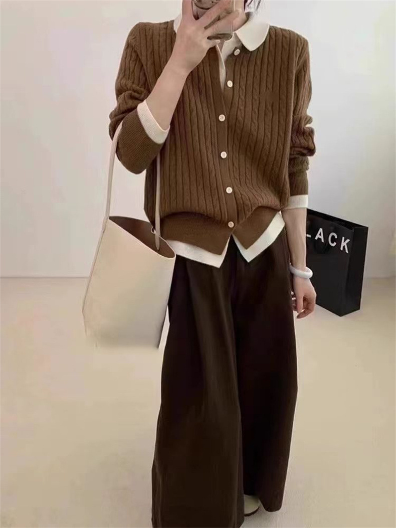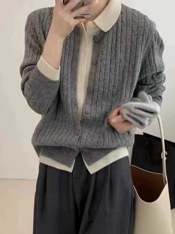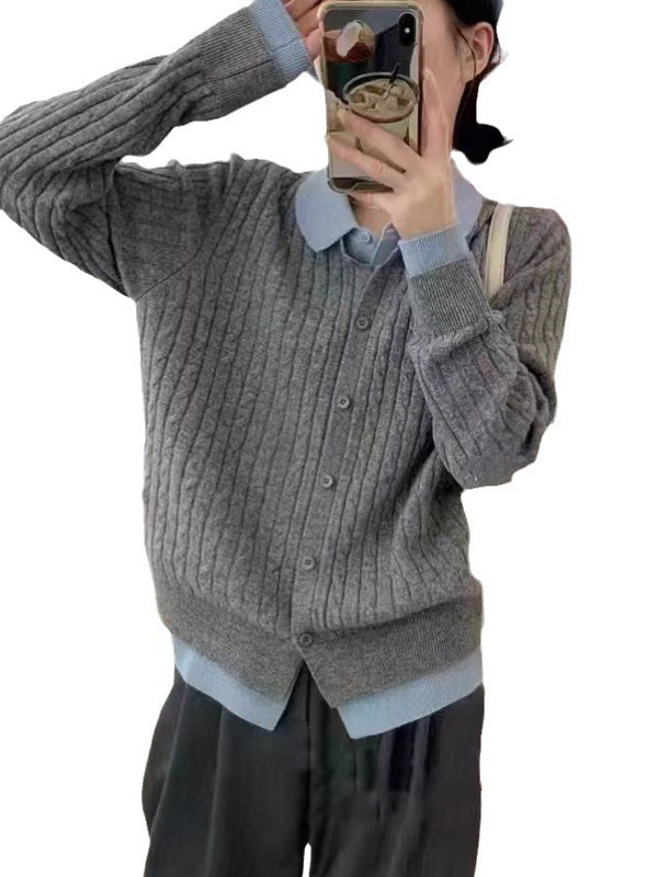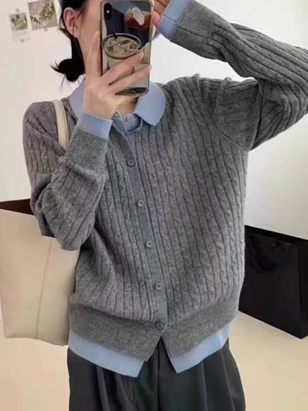 Женский вязаный кардиган из двух частей с лоскутными лацканами, весна и осень, новый стиль, свободный и стильный универсальный свитер-жакет с закруткой, топ