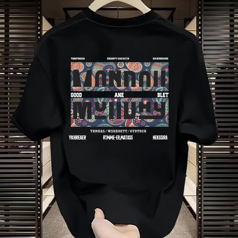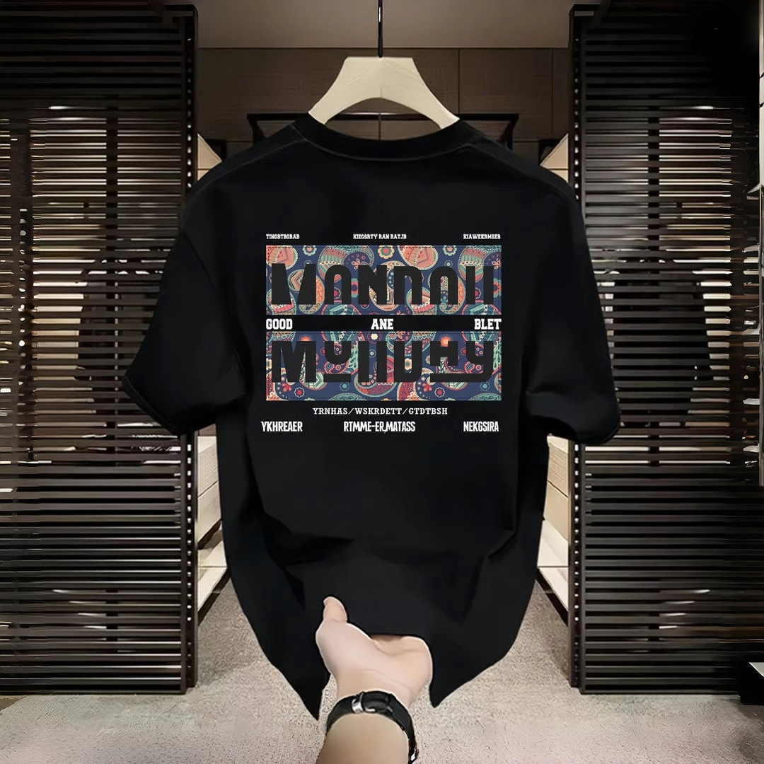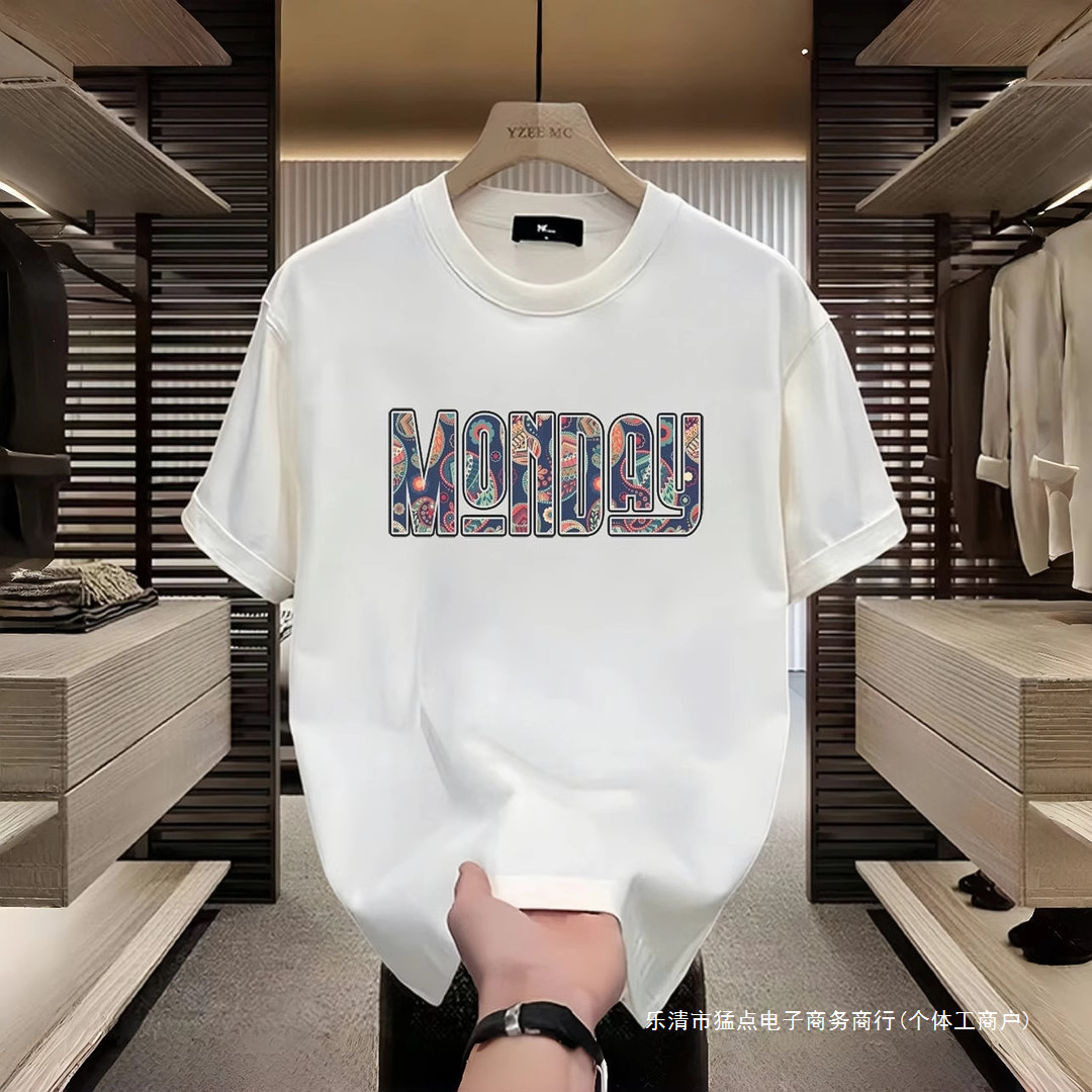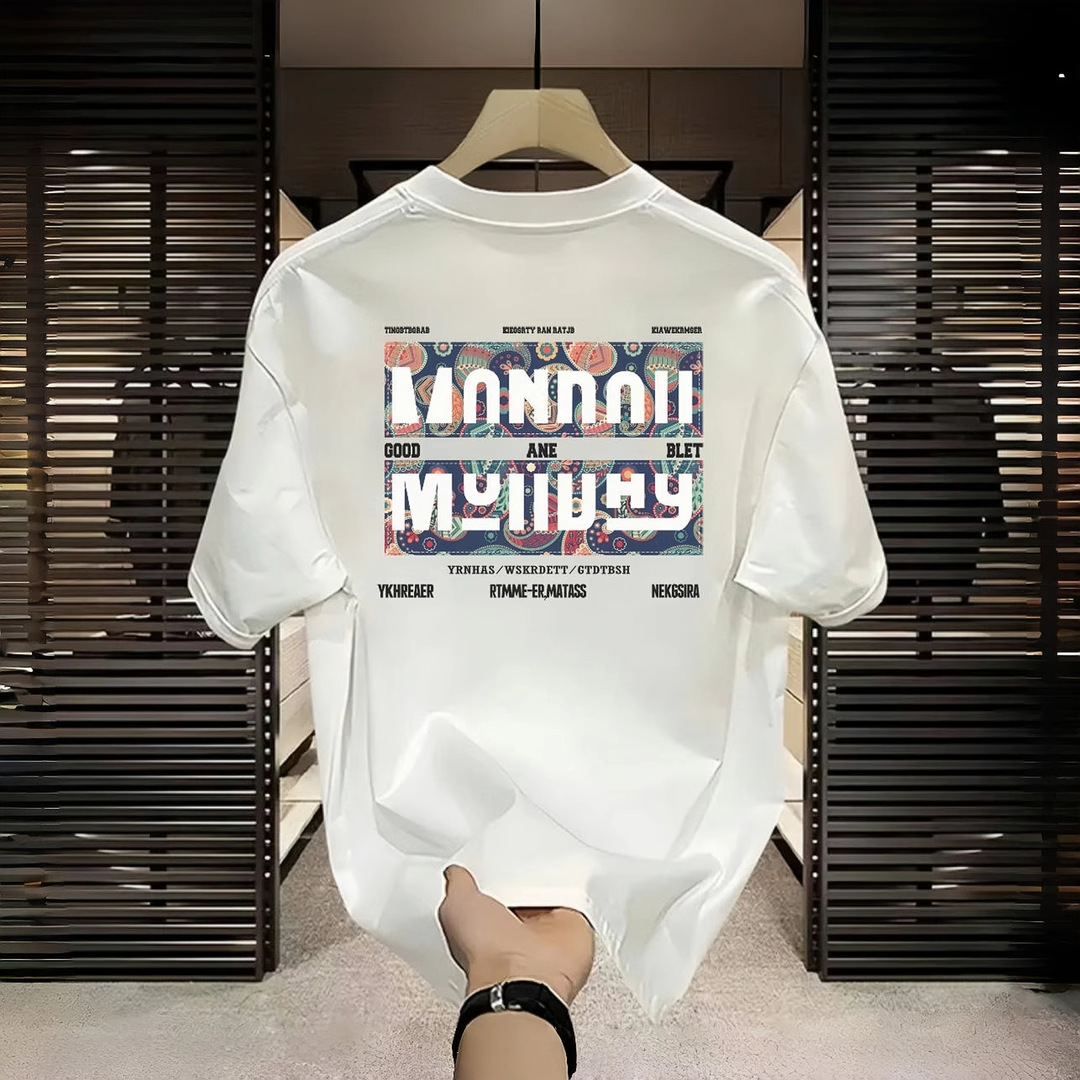 Мужская футболка с короткими рукавами в тяжелом весе, новый летний стиль, круглый вырез, модный бренд с принтом, повседневная универсальная футболка из чистого хлопка, топ