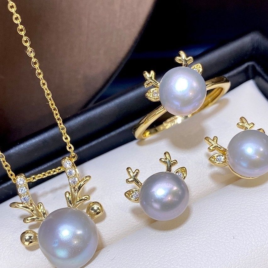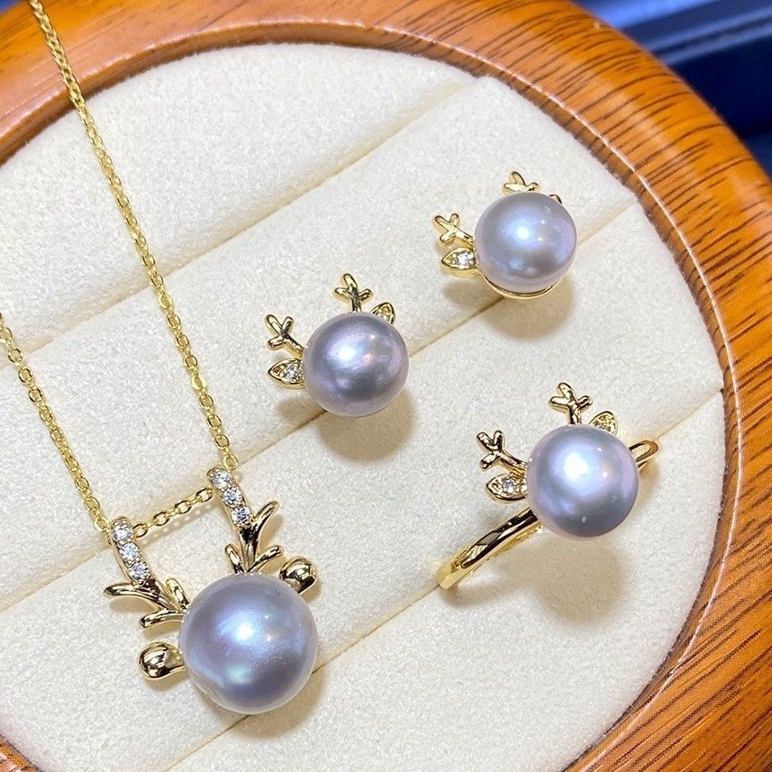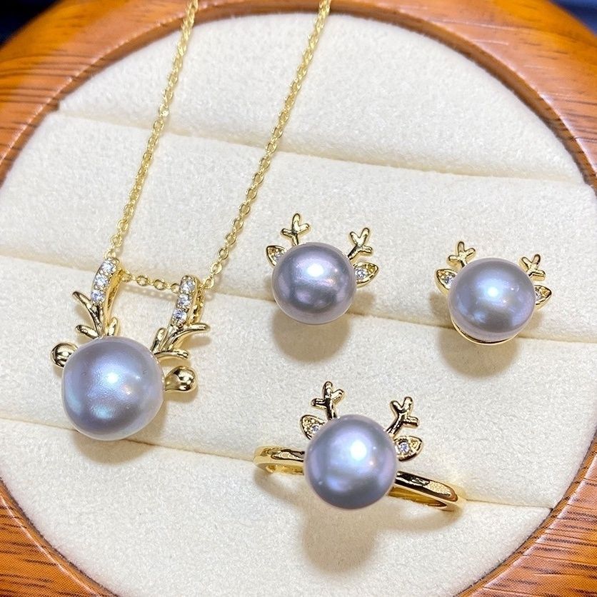 Редкий платиново-серый пресноводный жемчуг Костюм-ювелирный комплект из трех предметов с золотым мастерством FashionEleganceСамый простой в сочетанииЭлегантная принцесса