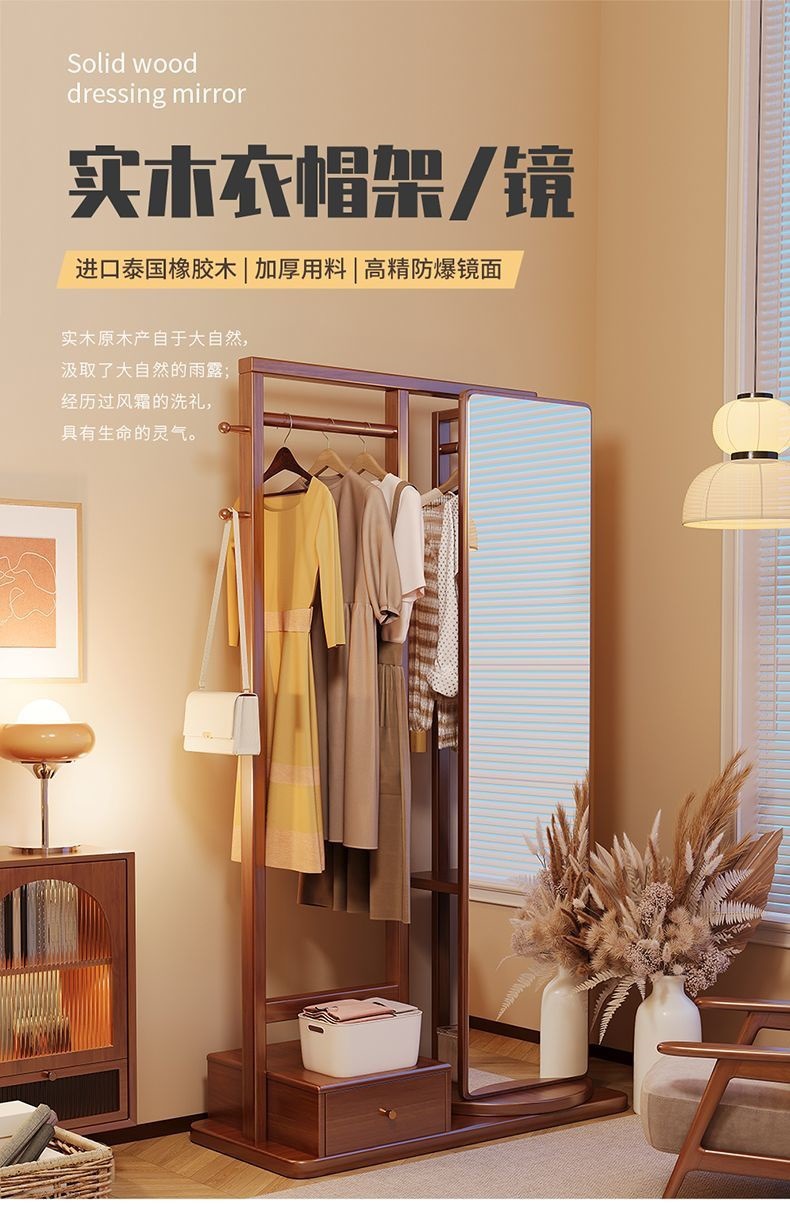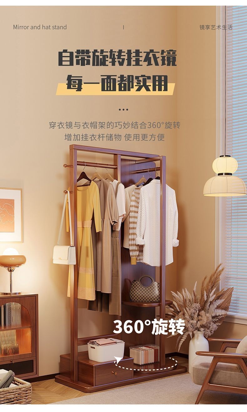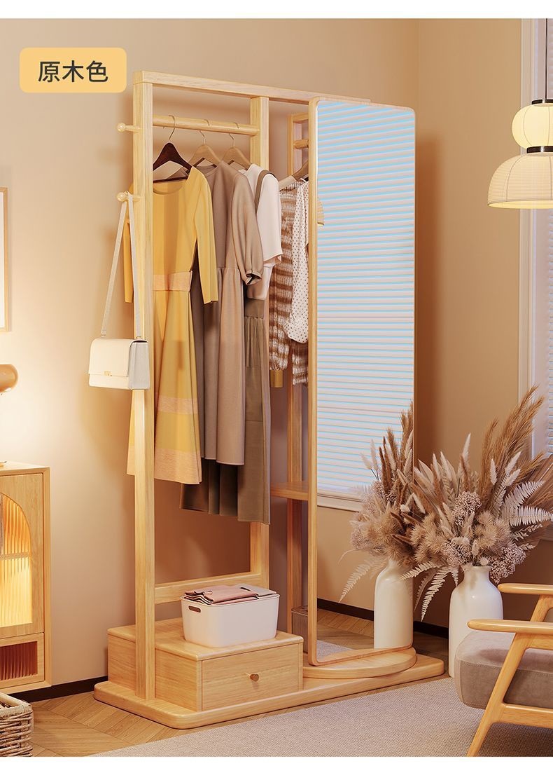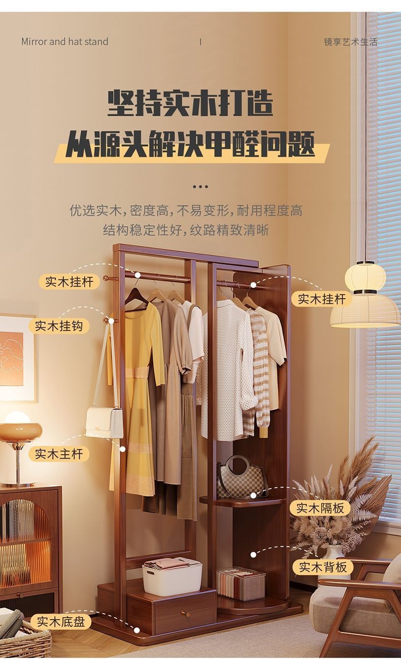 Вешалка для одежды из цельного дерева, встроенное зеркало, туалетное зеркало, напольная вешалка для одежды, гостиная, спальня, входная дверь, домашнее зеркало в полный рост
