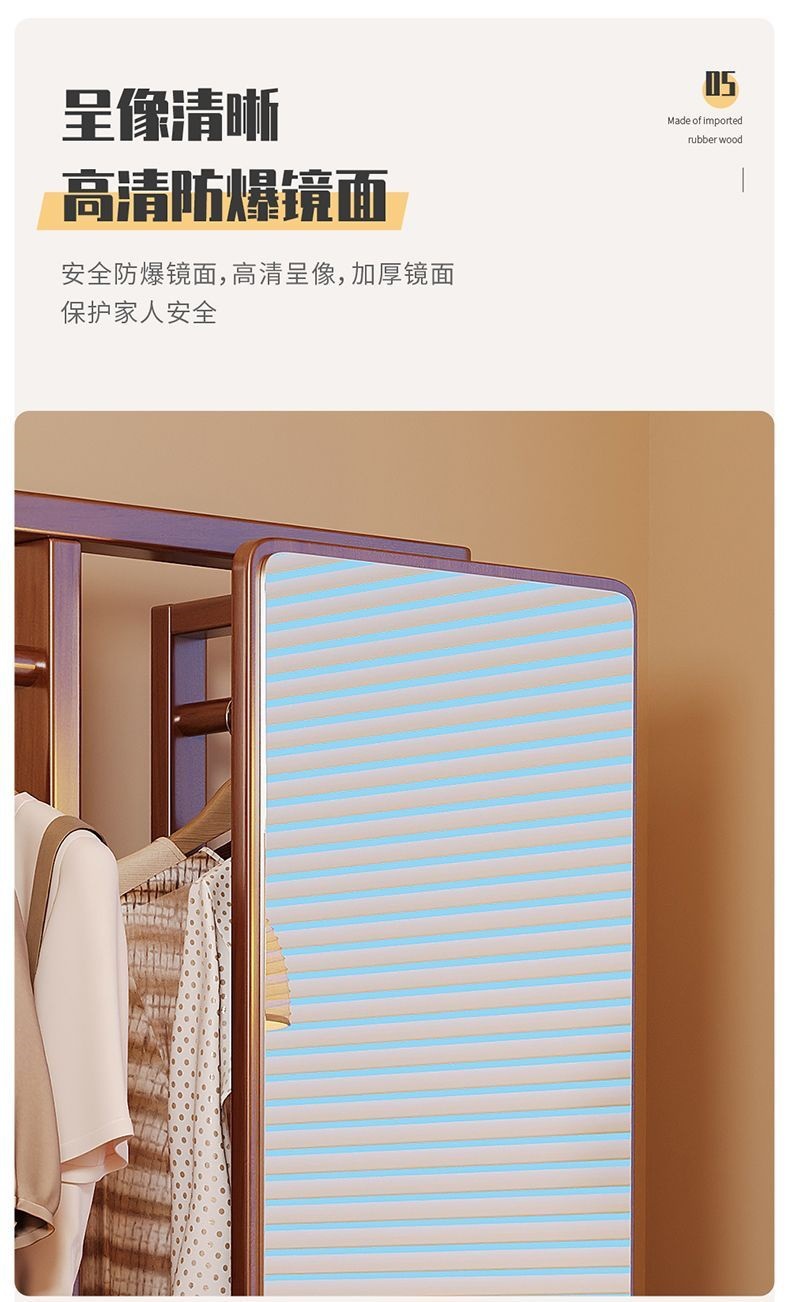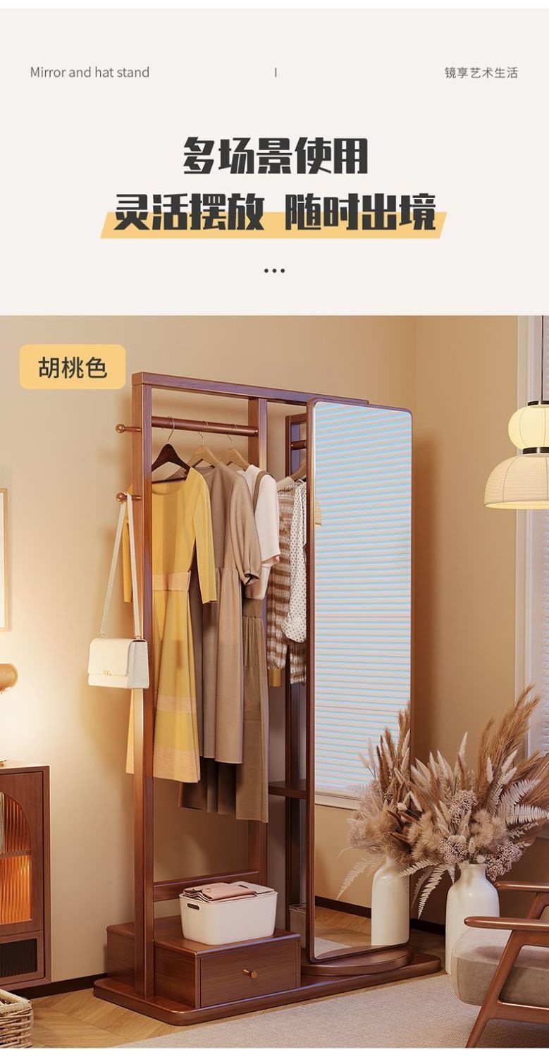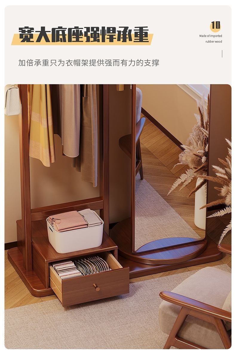 Вешалка для одежды из цельного дерева, встроенное зеркало, туалетное зеркало, напольная вешалка для одежды, гостиная, спальня, входная дверь, домашнее зеркало в полный рост