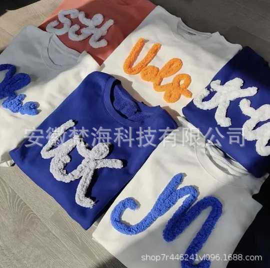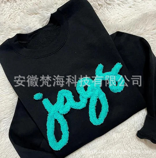 Трансграничный независимый сайт Etsy, хит продаж 2024 года, хлопчатобумажное полотенце с вышивкой, свитшот с круглым вырезом, изготовленный на заказ