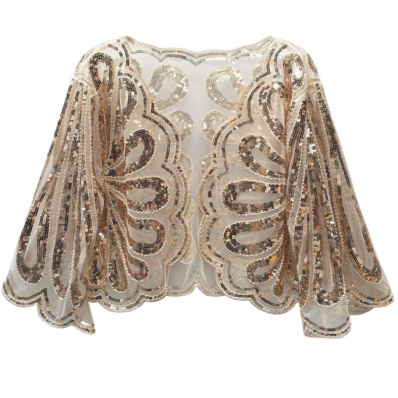 Трансграничная ретро шаль с блестками, женская новая верхняя одежда, европейский и американский жилет, тонкое платье с блестками, маленькая куртка с бисером, защита от солнца