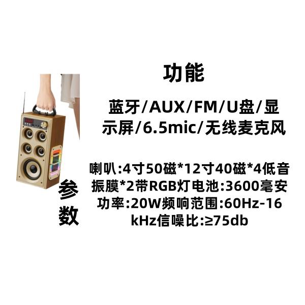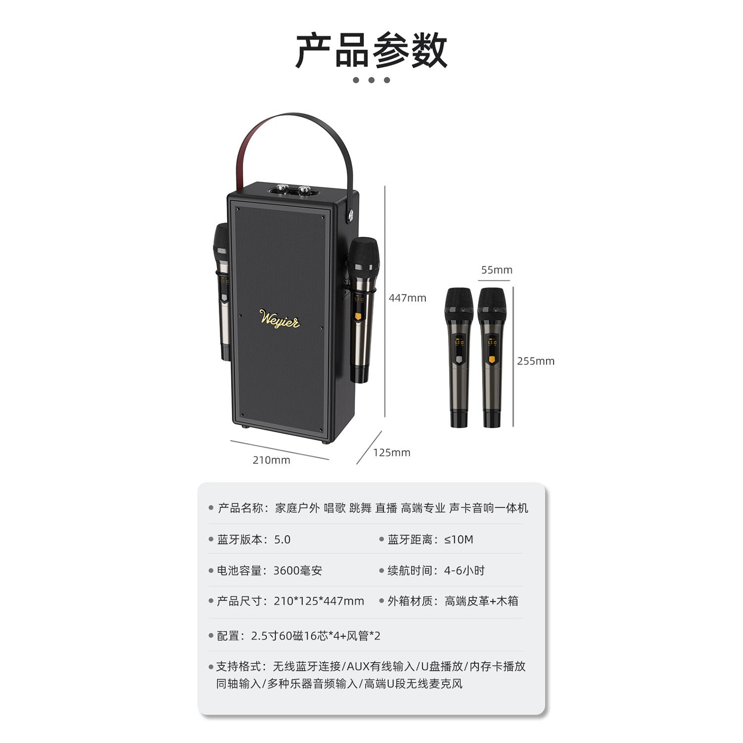 505D [объемный звук + несколько режимов + звук Dolby на тысячу юаней] с цветной подсветкой - официальный стандарт; 531h черный [поставляется с пультом дистанционного управления без подсветки + HD-соединение] — официальный стандарт; 388 черный-официальный стандарт; 506 черный, зарядка 220 В без аккумулятора [поставляется с пультом дистанционного управления] — официальный стандарт; 505K [зарядка 220 В + бесплатный пульт дистанционного управления + 2 микрофона] — официальная стандартная конфигурация; Outdoor K Song King 415 [Два микрофона бесплатно + деревянный звук красивее] Качество - официальный стандарт; Outdoor K-song King 414 [с подсветкой + 2 микрофона бесплатно] — официальная стандартная конфигурация; 418 Outdoor Karaoke King [Устранить исходный звук + получить 2 микрофона] — официальный стандарт; Идеальная версия 531d [с разноцветной подсветкой и пультом дистанционного управления] — официальная стандартная конфигурация; 412 Green [Высокая мощность + Выпуск воды] — Официальный стандарт; 532d [12 динамиков с цветной подсветкой и пультом дистанционного управления] — официальная стандартная конфигурация; 5102 высокопроизводительный деревянный мощный [K song king] - официальная стандартная конфигурация; Golden 5305 Square Dance K-song [1 микрофон бесплатно]] — официальный стандарт; Песня для караоке в стиле Black Square Dance [1 микрофон бесплатно] — официальный стандарт; Golden Karaoke Square Dance [2 микрофона бесплатно] — официальный стандарт; Black Karaoke Square Dance [2 микрофона бесплатно] — официальный стандарт; 531H древесное зерно без света-официальный стандарт; 531H древесное зерно со светом-оффициальный стандарт; Новый деревянный 516K King of Songs [Бесплатные 2 микрофона + пульт дистанционного управления + сабвуфер — официальная стандартная конфигурация