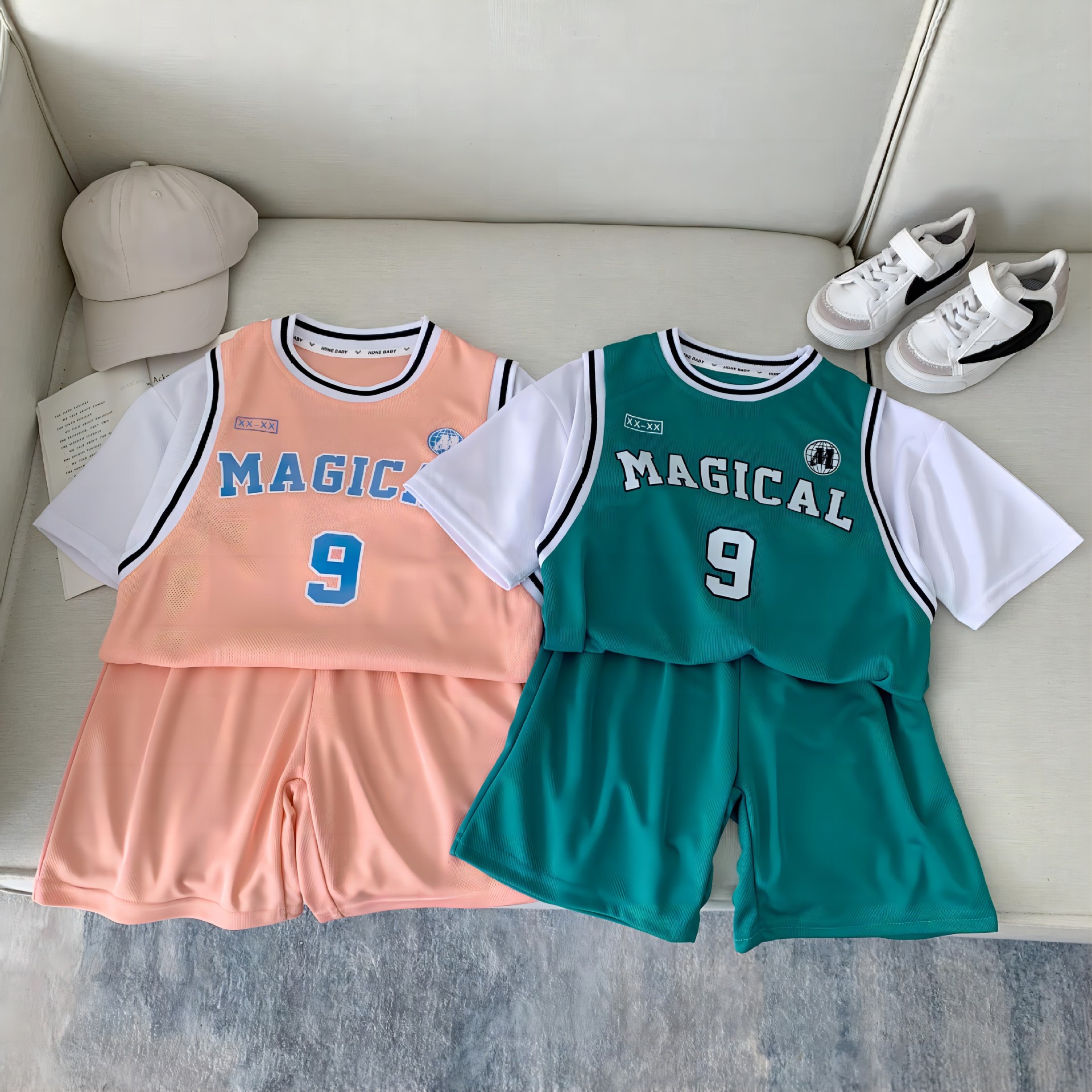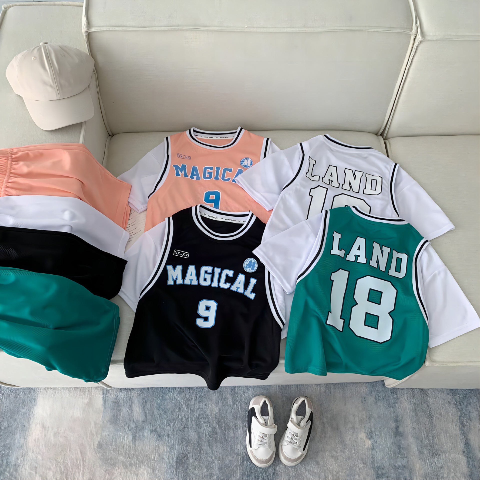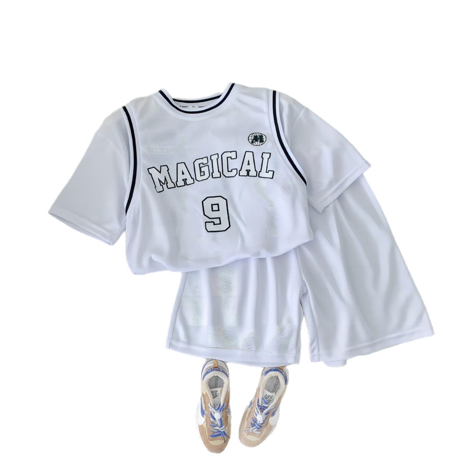 Новый детский быстросохнущий трикотаж для мальчиков и девочек, летние дышащие повседневные шорты с короткими рукавами, комплект из двух предметов, детский трикотажный костюм