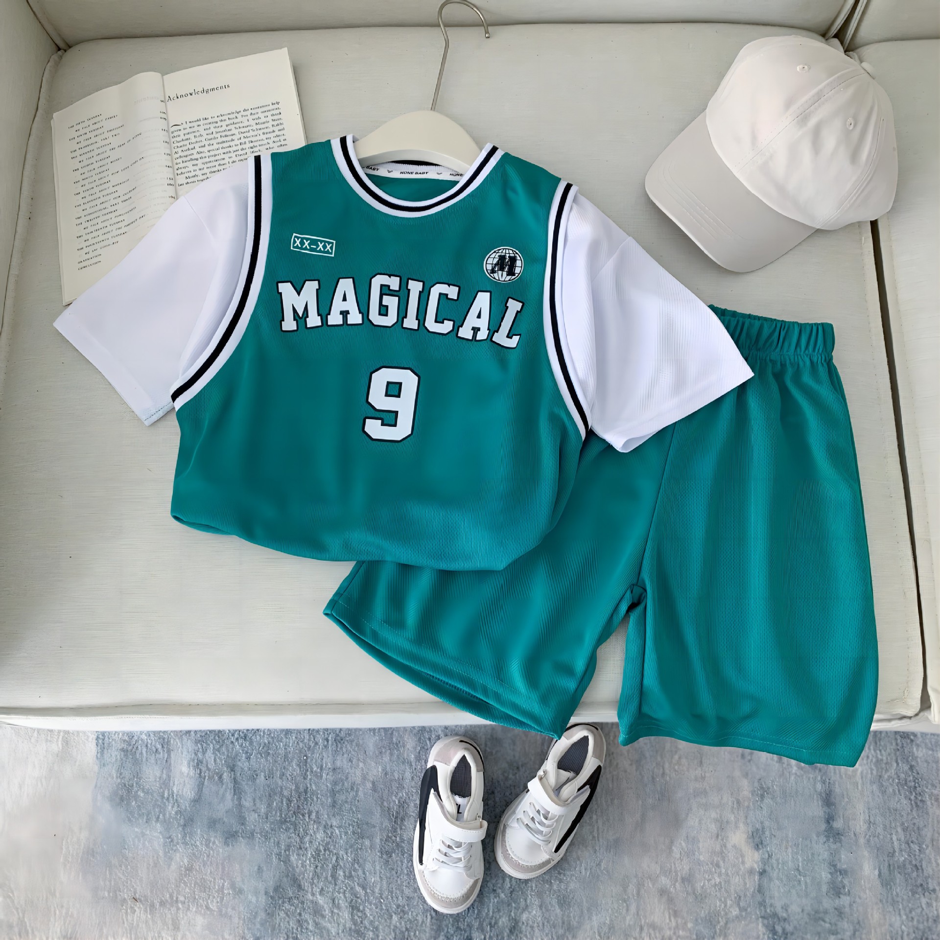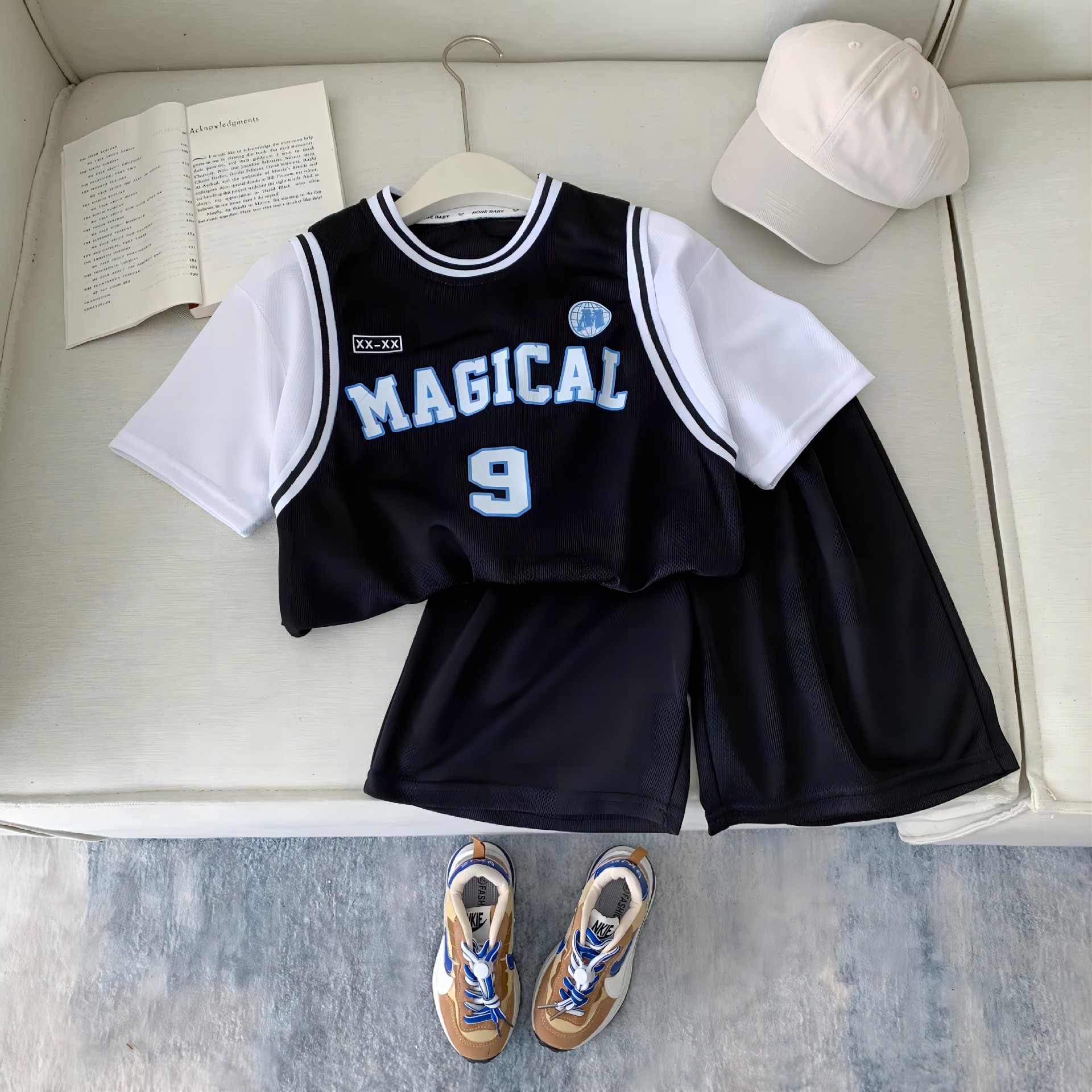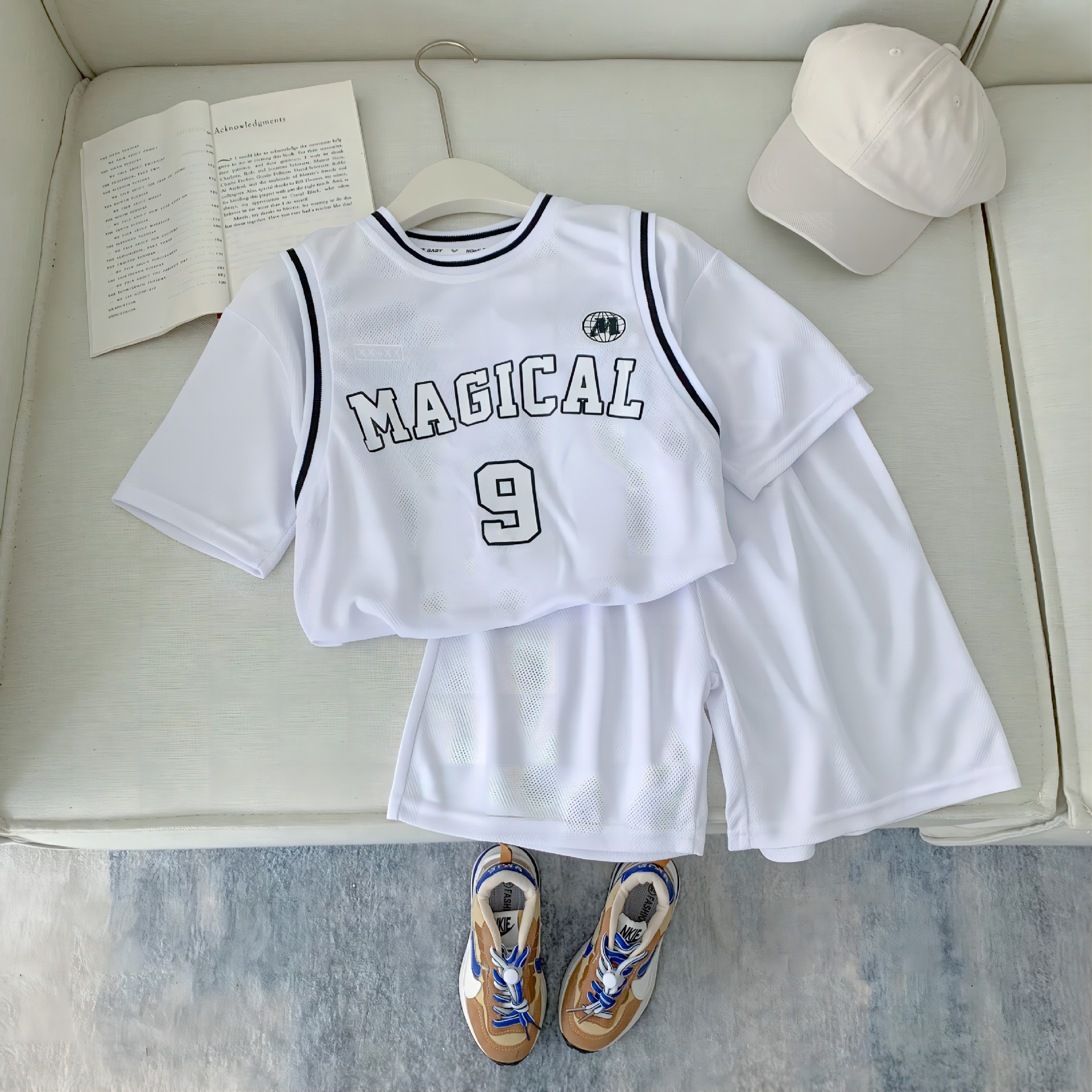 Новый детский быстросохнущий трикотаж для мальчиков и девочек, летние дышащие повседневные шорты с короткими рукавами, комплект из двух предметов, детский трикотажный костюм