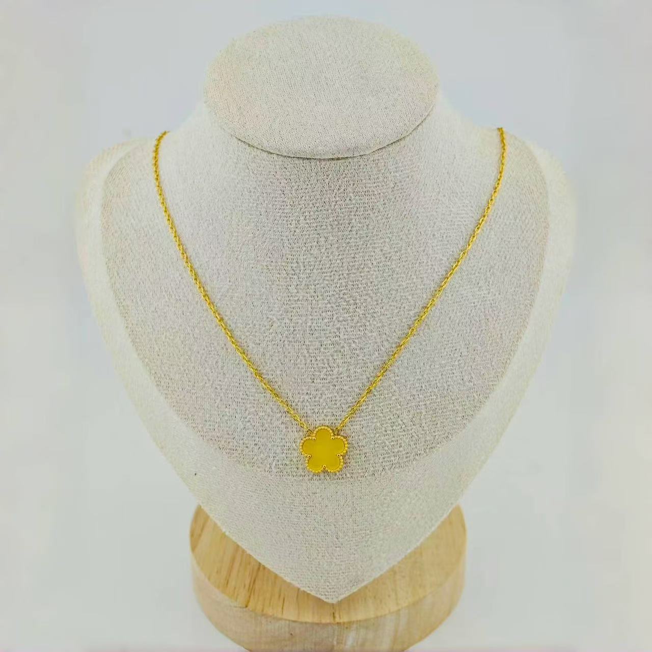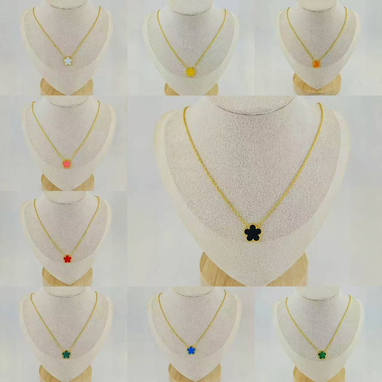 Трансграничное модное персонализированное ожерелье с пятилистным цветком, черно-белое ожерелье из титановой стали, серьги, легкий роскошный темпераментный комплект, цепочка на ключицу