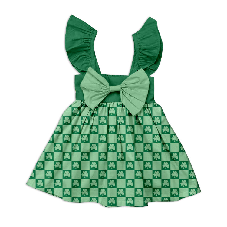 Летнее платье для девочек с бантом, короткими рукавами и принтом, оптовая продажа через границу, индивидуальный пошив