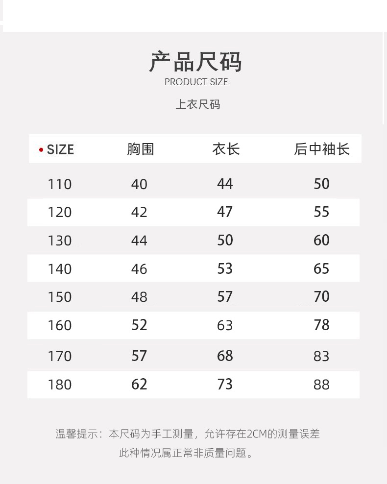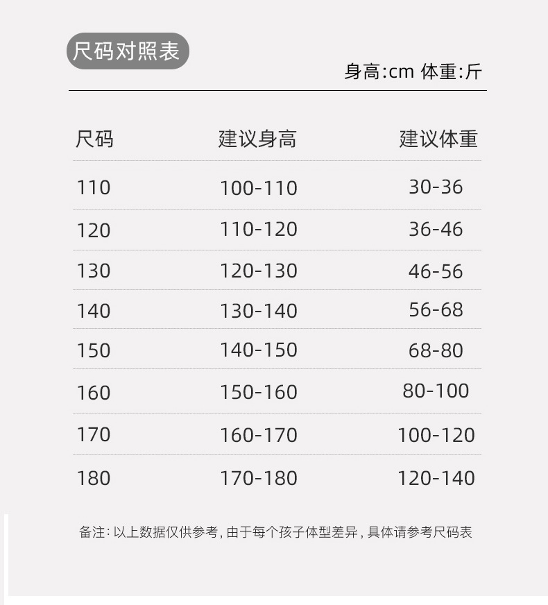110cm; 120cm; 130cm; 140cm; 150cm; 160cm; 170cm; 180