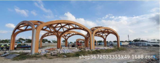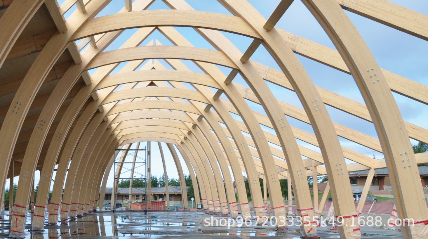 Заводская кастомизированная изогнутая клееная балка из ели для больших пролетов, несущая, антикоррозийная и влагостойкая, для строительства купольных зданий и арок.