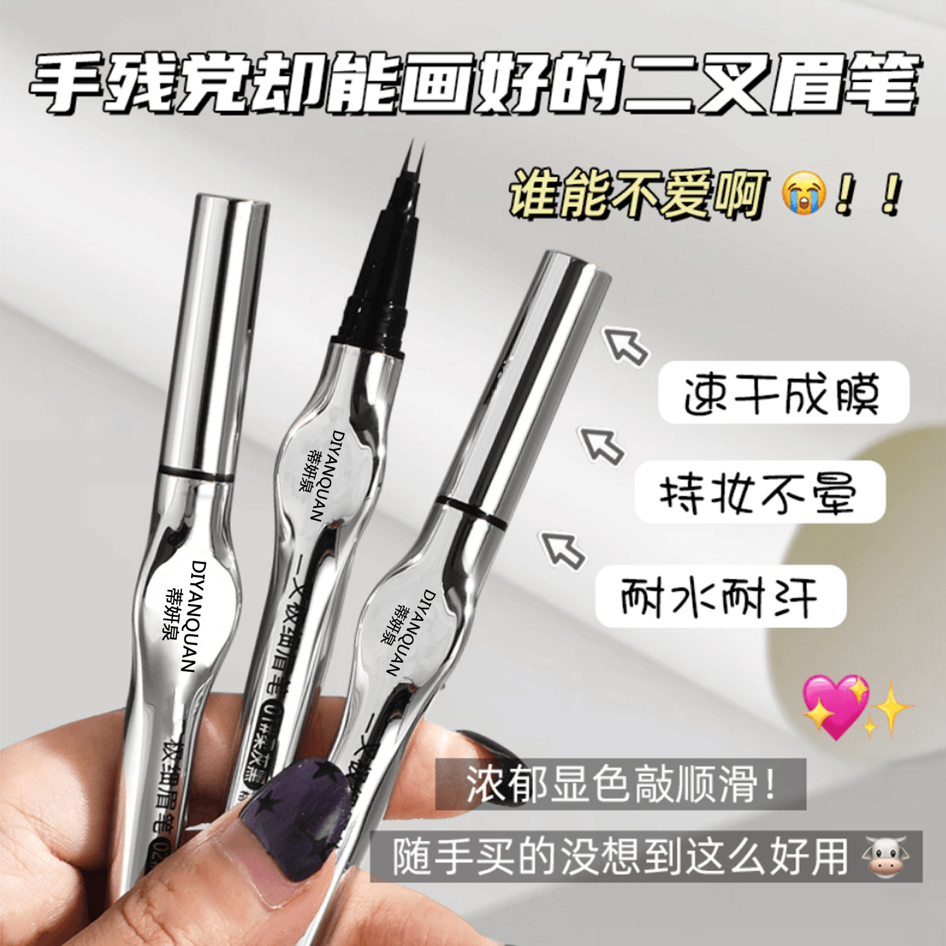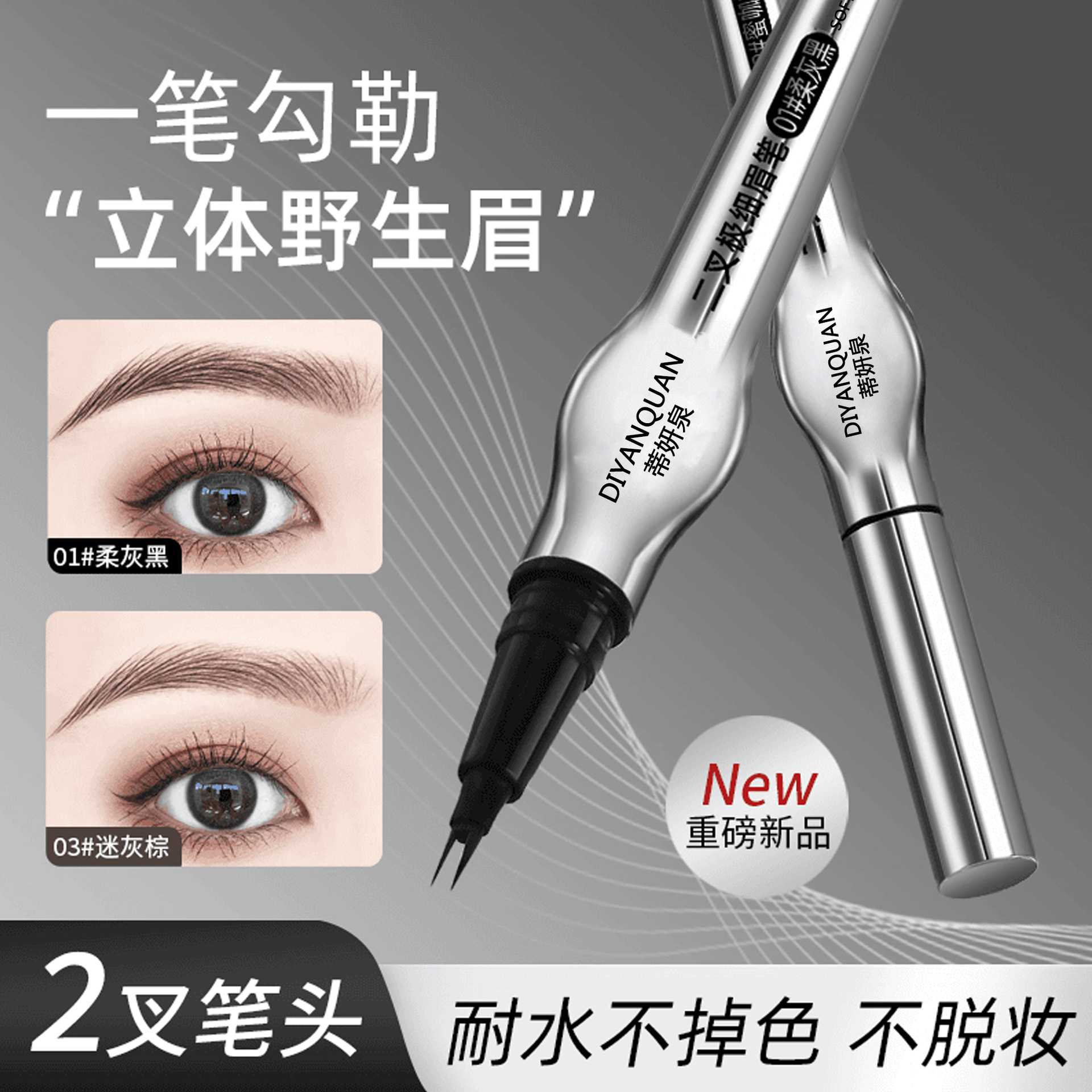 蒂研泉二叉定位眉笔持久防水耐汗不晕染立体野生眉速干耐蹭批发