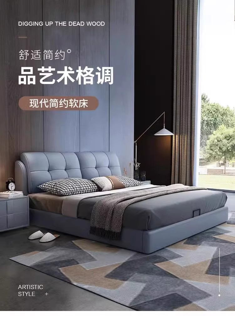 2025 новая модель кровати для главной спальни из натуральной кожи, элитная элегантная современная минималистичная кровать 1.8m двуспальная кровать, свадебная кровать, домашняя кровать для спальни