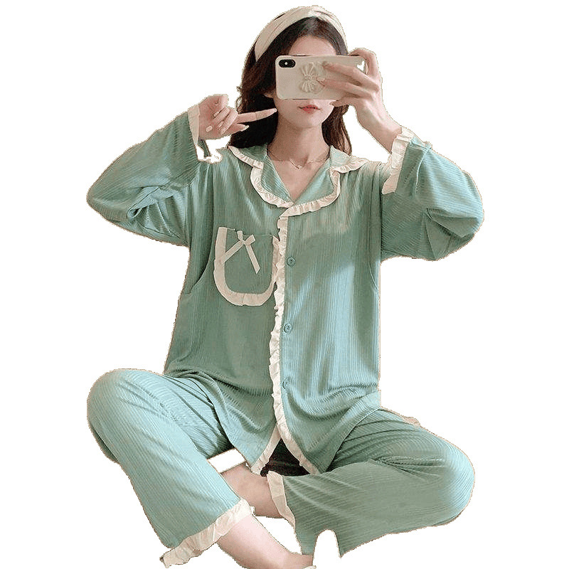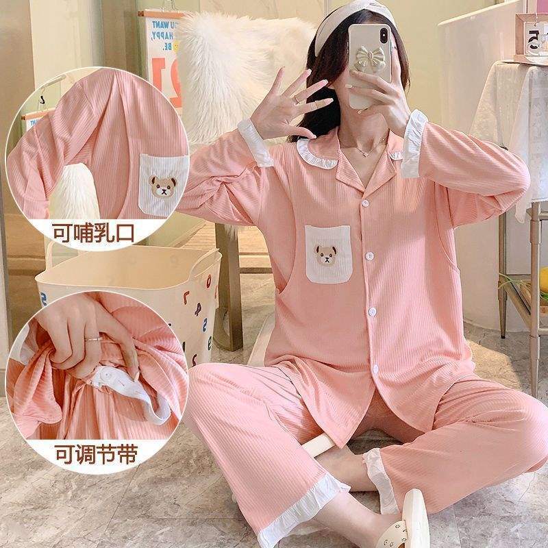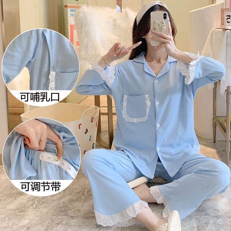 Пижамы для беременных, послеродовая весенне-осенняя одежда для родов, свободный летний тонкий кружевной костюм для кормления грудью и беременности.