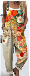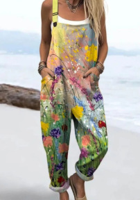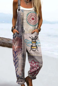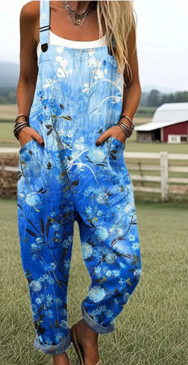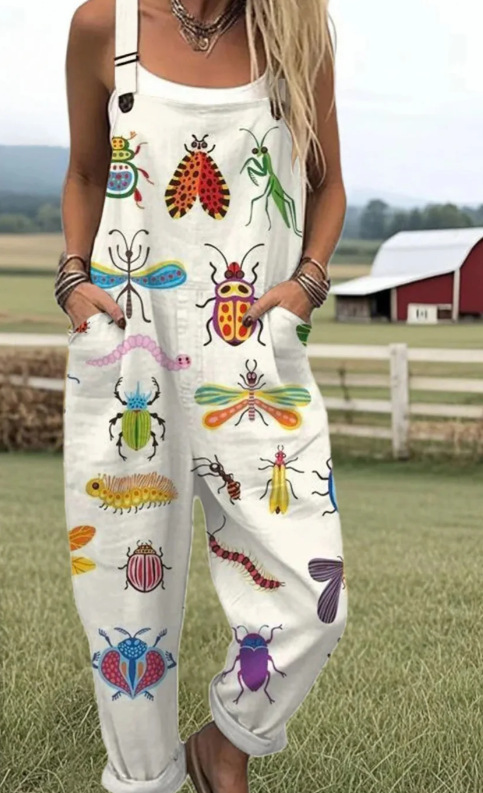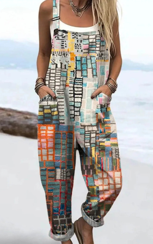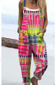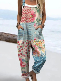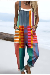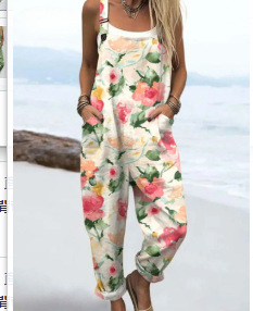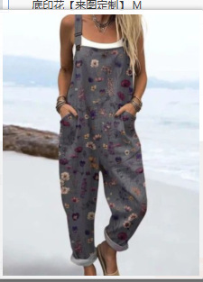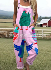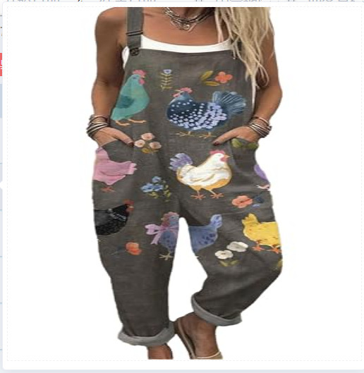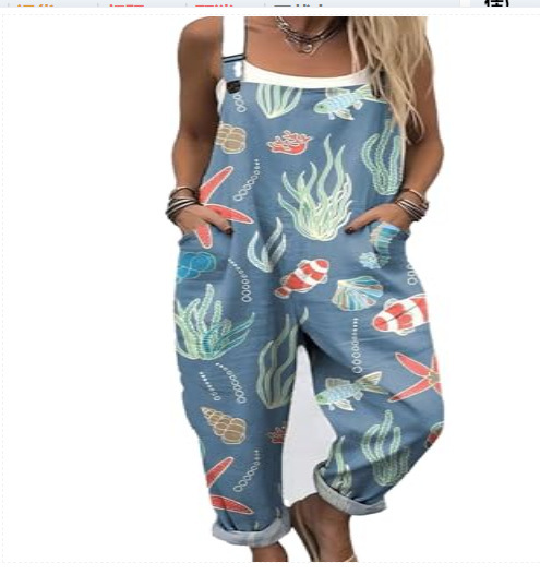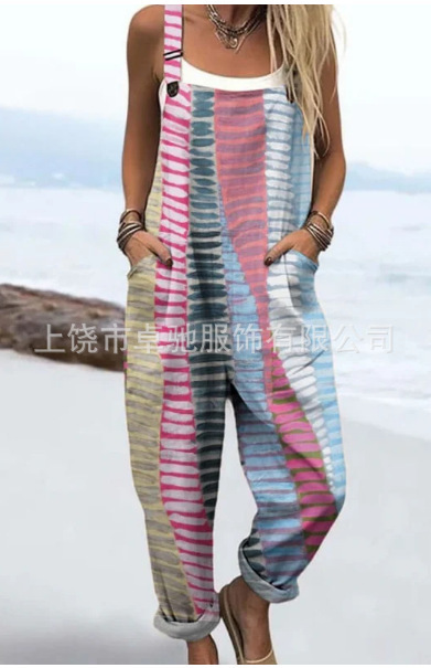 (Круглая пряжка) Трансграничная женская одежда Amazon Европейские и американские летние повседневные брюки на подтяжках с цифровым 3D принтом на пуговицах