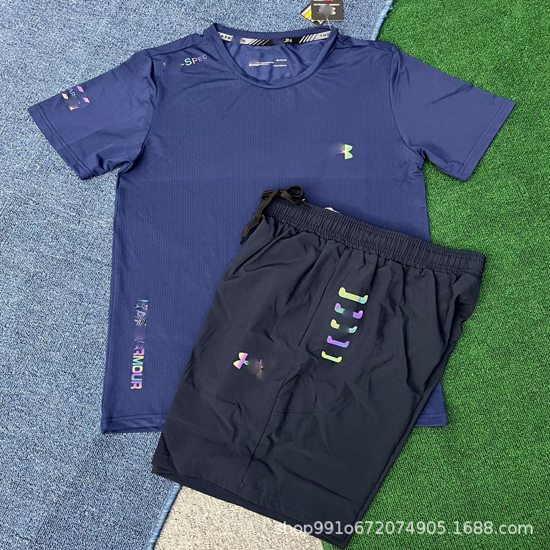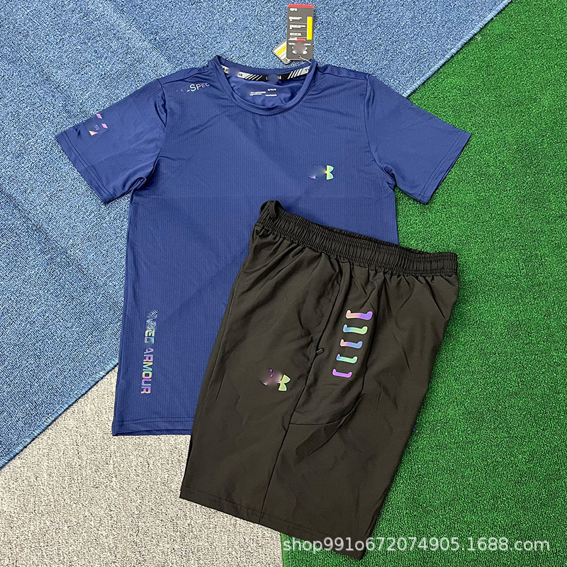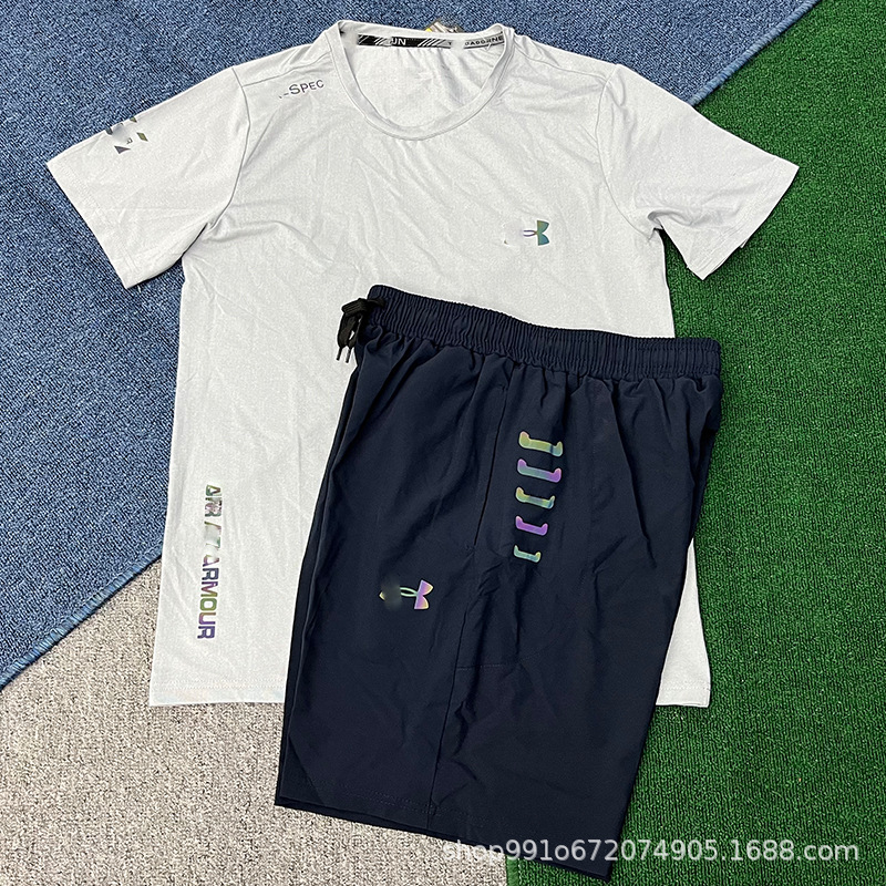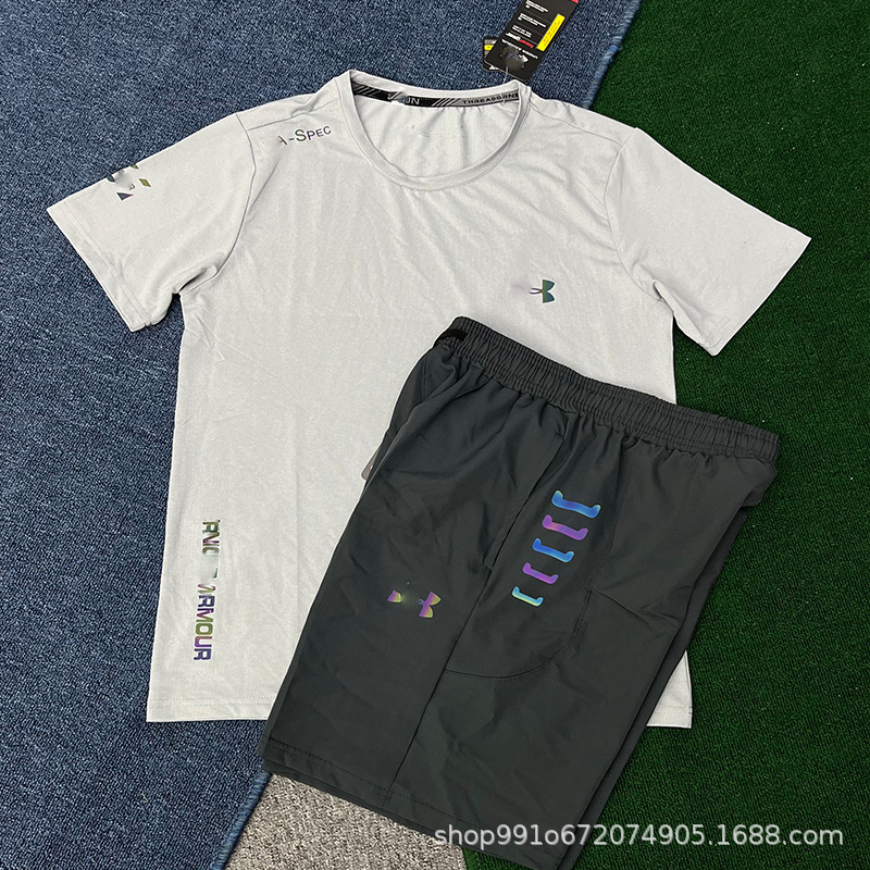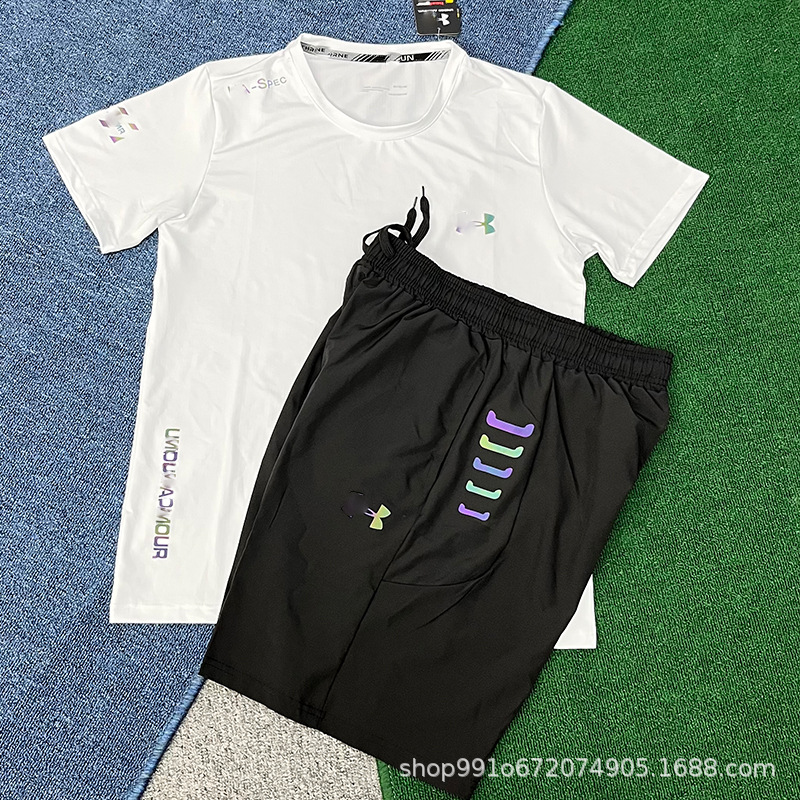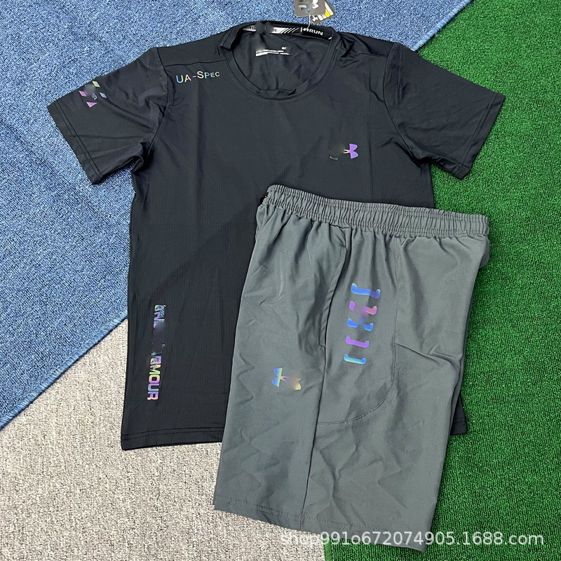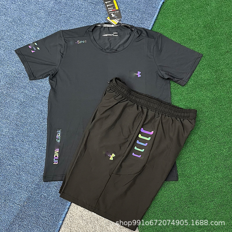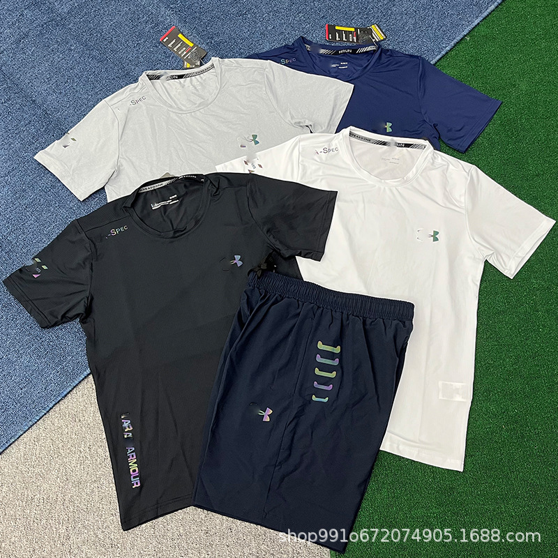 В наличии быстросохнущие спортивные эластичные шорты и комплект с короткими рукавами для мужчин, летние свободные брюки для фитнеса, бега и баскетбола, дышащие и быстросохнущие.