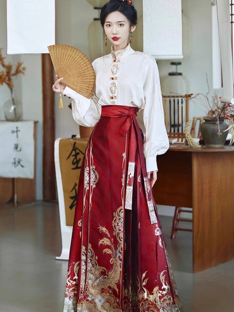 Новая юбка Hanfu mamian в китайском стиле с тяжелой вышивкой на плечах, весенне-летний комплект для миниатюрных размеров, женская повседневная одежда в национальном стиле больших размеров