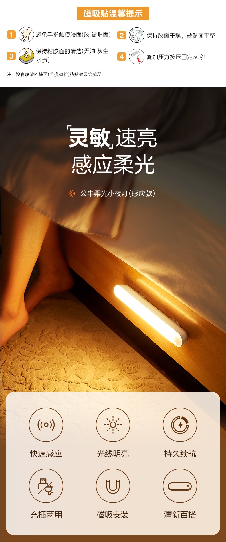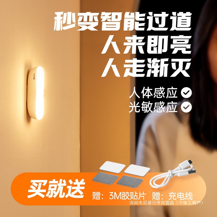 Интеллектуальная лампа с датчиком человеческого тела, ночник, домашняя зарядка у кровати, ночная входная дверь, прихожая, туалет, светится, когда люди приходят