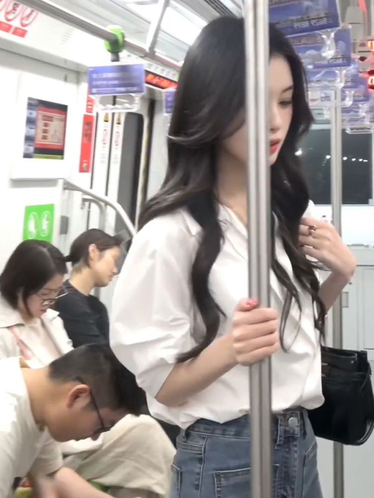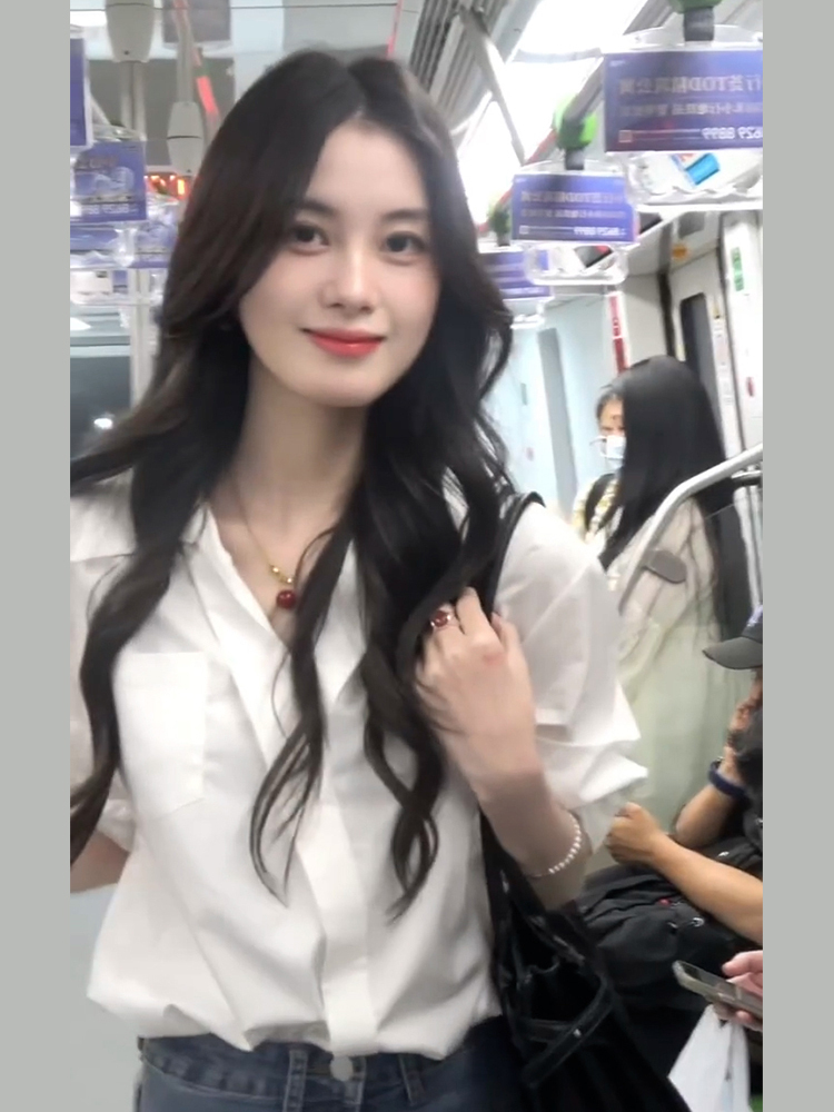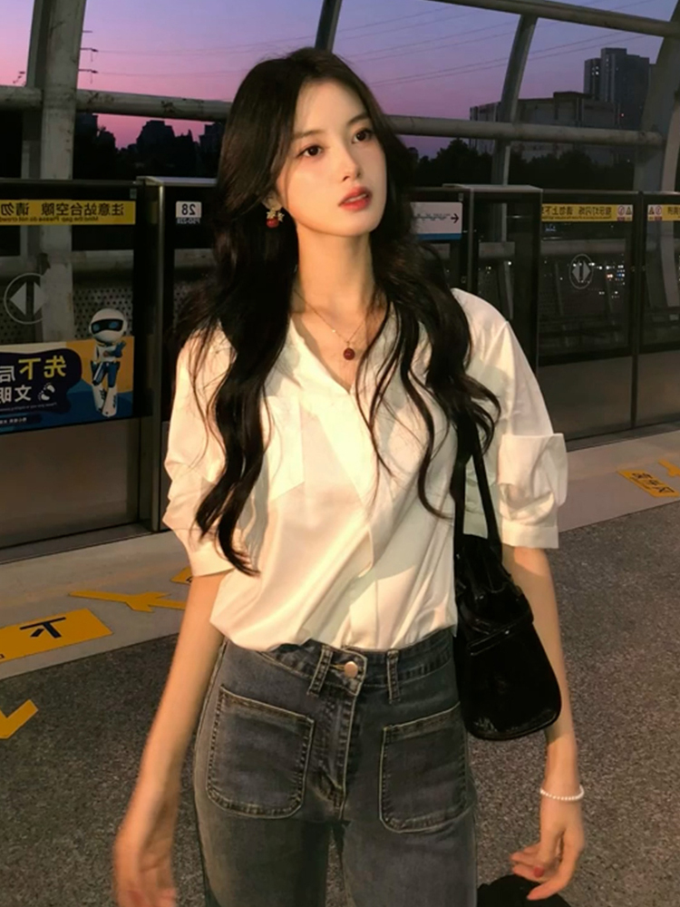 Французская белая рубашка с V-образным вырезом и короткими рукавами для женщин, лето 2025, новая профессиональная рабочая одежда, рубашка с защитой от солнца, дизайнерский топ