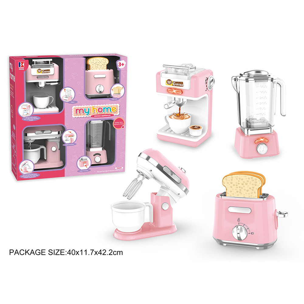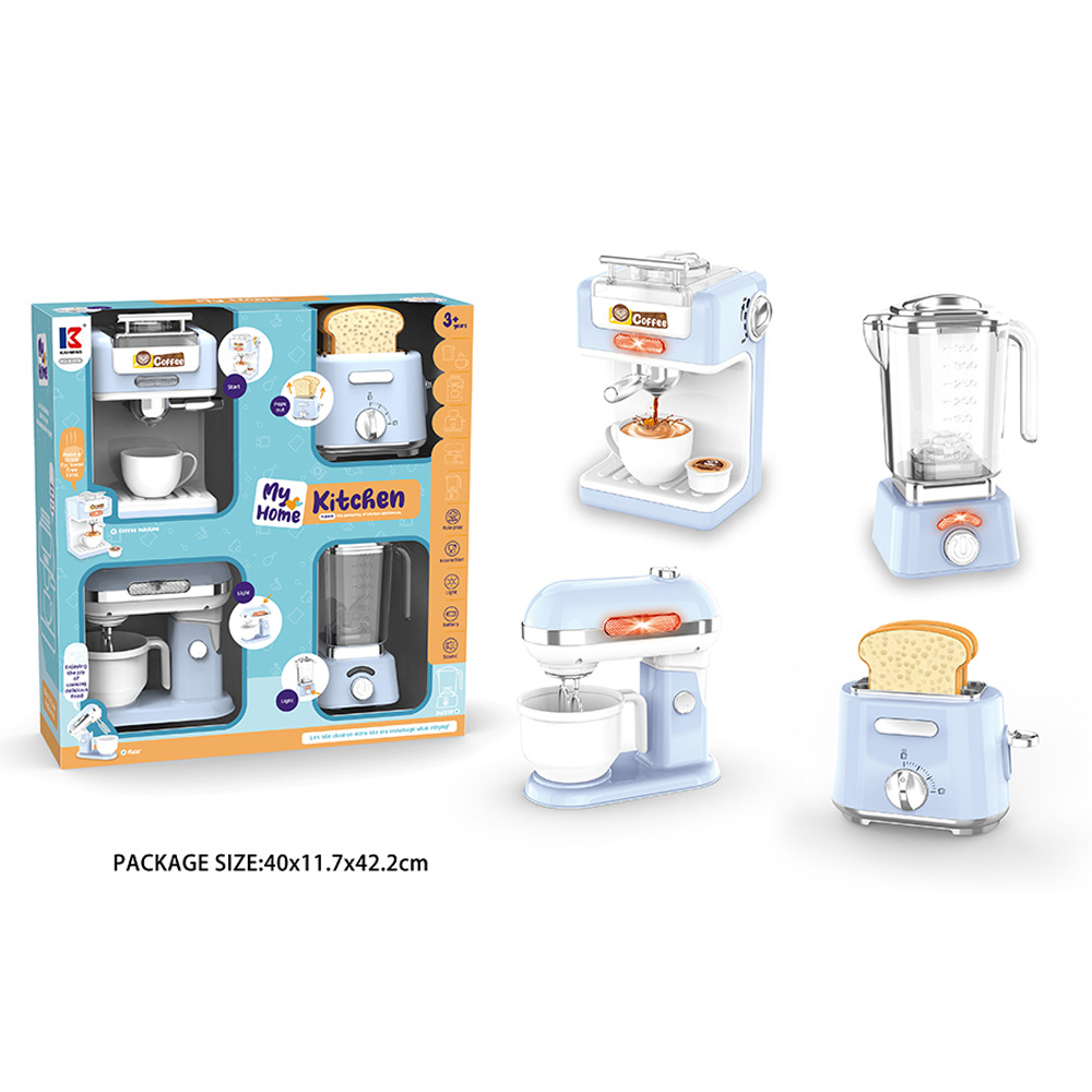 Трансграничный экспорт кухонных игрушек для игрового домика, детское искусственное электрическое освещение и звуковые эффекты, набор игрушек для мелкой бытовой техники 4-в-1