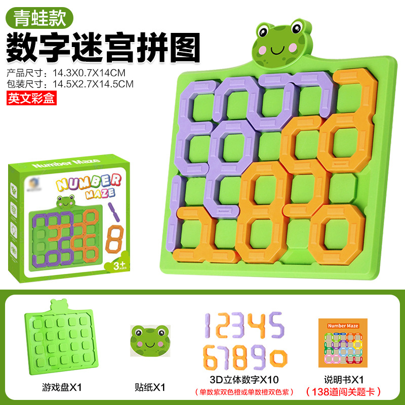 | 数字迷宫拼图 | 青蛙、熊猫 | 英文彩盒 | 游戏盘x1、贴纸x1、 3D立体数字x10、说明书x1 | 14.3x0.7x14CM | 14.5x2.7x14.5CM | 240 | 74*34*61CM |
