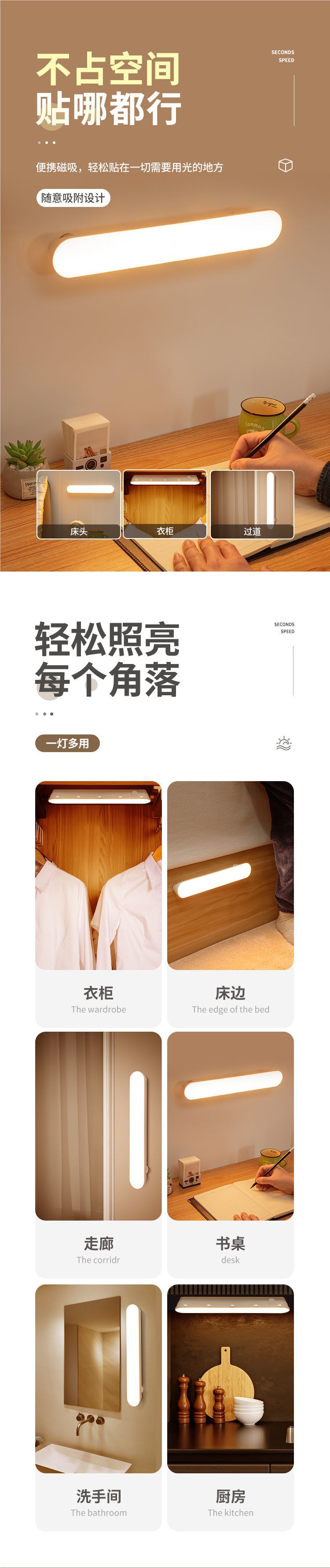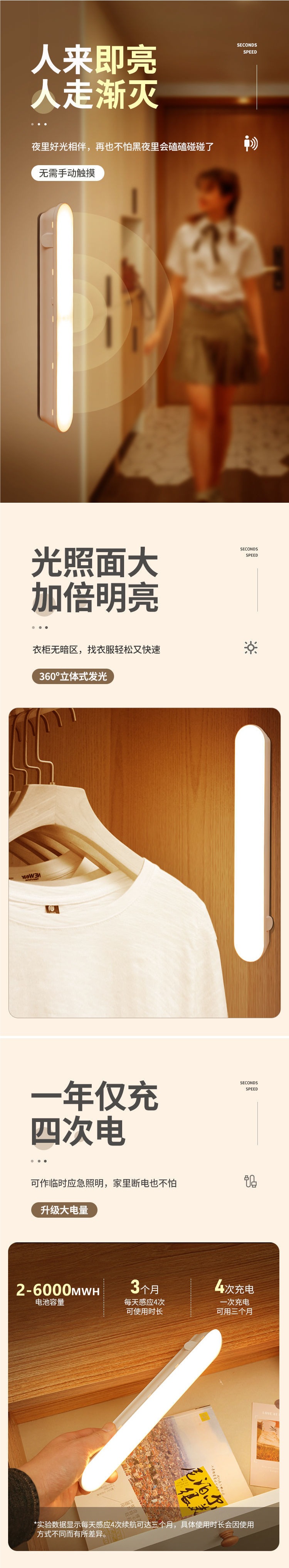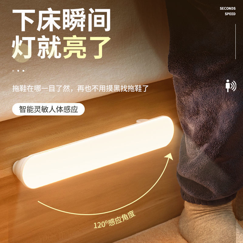 Полностью автоматическая лампа с датчиком человеческого тела, интеллектуальная лампа для ходьбы человека, коридор с зарядкой без звука, прикроватный ночник для спальни для тушения ночи
